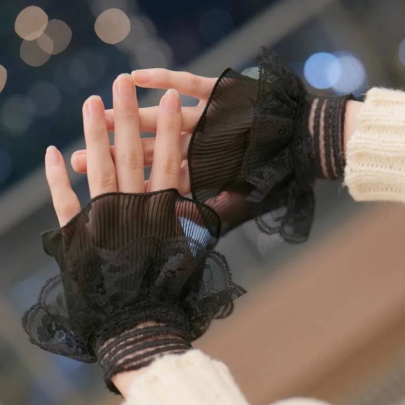 1 paire de faux poignets universels, beaux et doux, décoratifs en dentelle, évasés, à volants, coude, pull, décoration, manches, accessoires artistiques