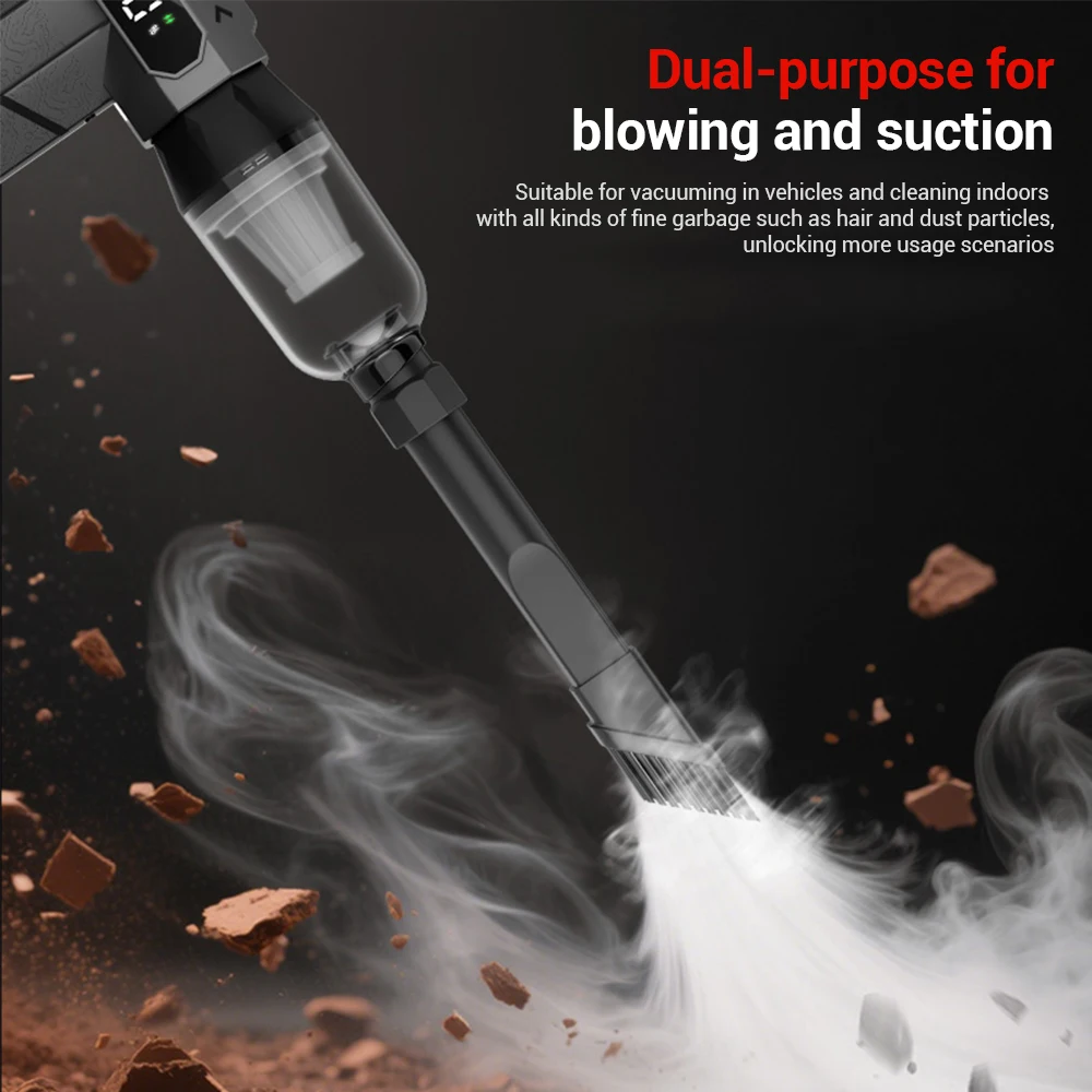 6.C'est un outil de nettoyage polyvalent pour la maison, la voiture et le bureau, adapté au soufflage de feu de carbone, au soufflage de poussière industrielle, au soufflage de suie, au nettoyage du clavier, au nettoyage de la voiture et de la moto, au nettoyage de la console centrale de la voiture, au nettoyage des crevasses de la voiture, au nettoyage des miettes du tapis de pied, au pique-nique nettoyage des déchets, etc.