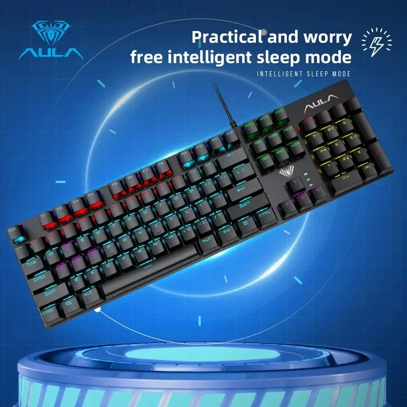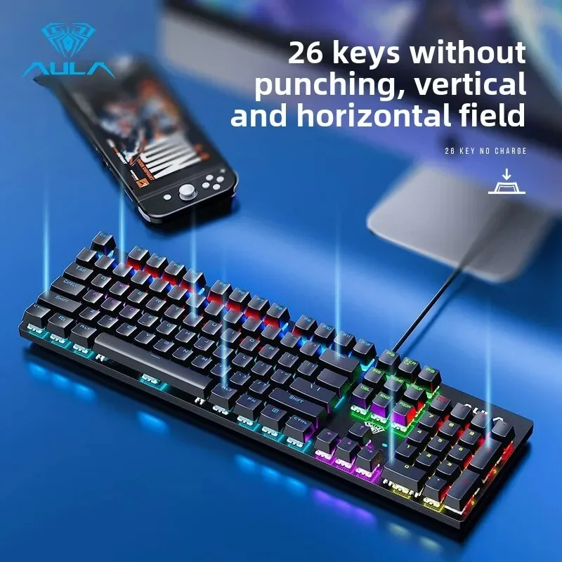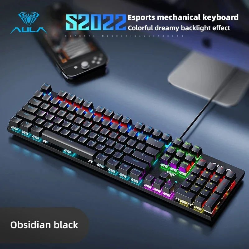 AULA S2022 clavier de jeu filaire ergonomie rétro-éclairage 104 touches interrupteur bleu ABS claviers Esports clavier pour accessoires de jeu PC