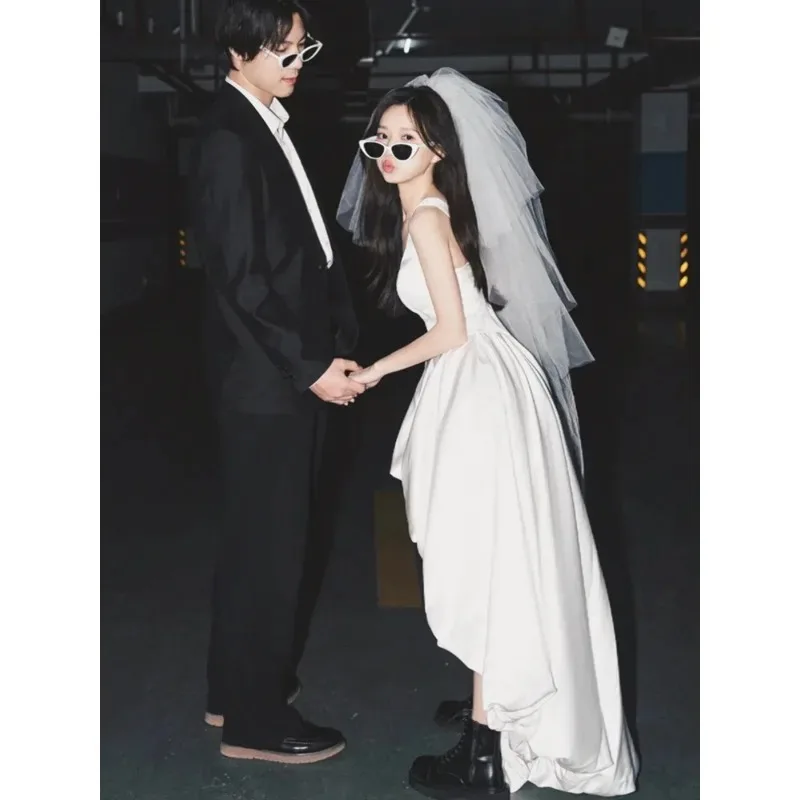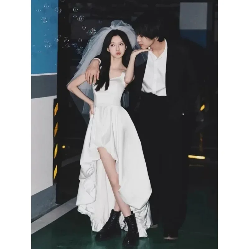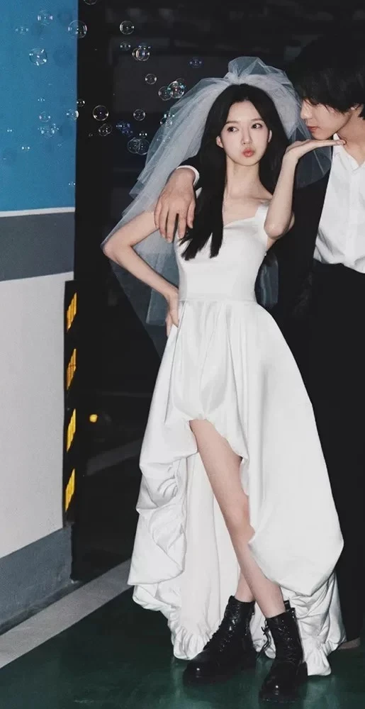 Cette robe de mariée présente un design de style français, offrant un look chic et élégant aux futures mariées.