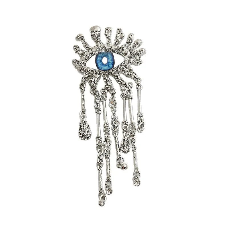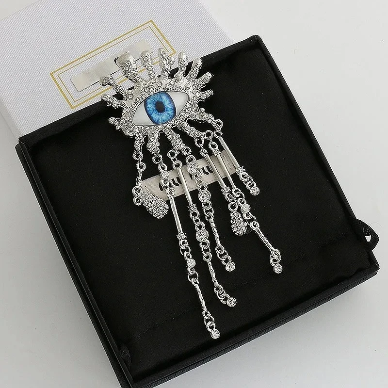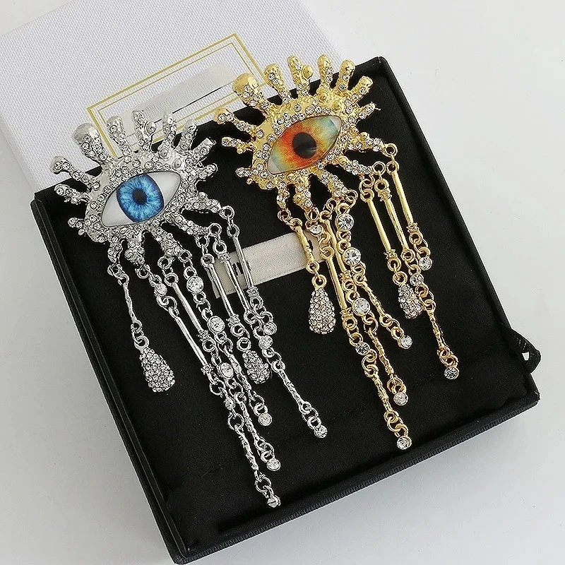 Broche rétro en strass en forme d'oeil, épingle à cravate, chaîne à pampilles, Badge de revers, accessoires de bijoux élégants unisexes à la mode pour costumes