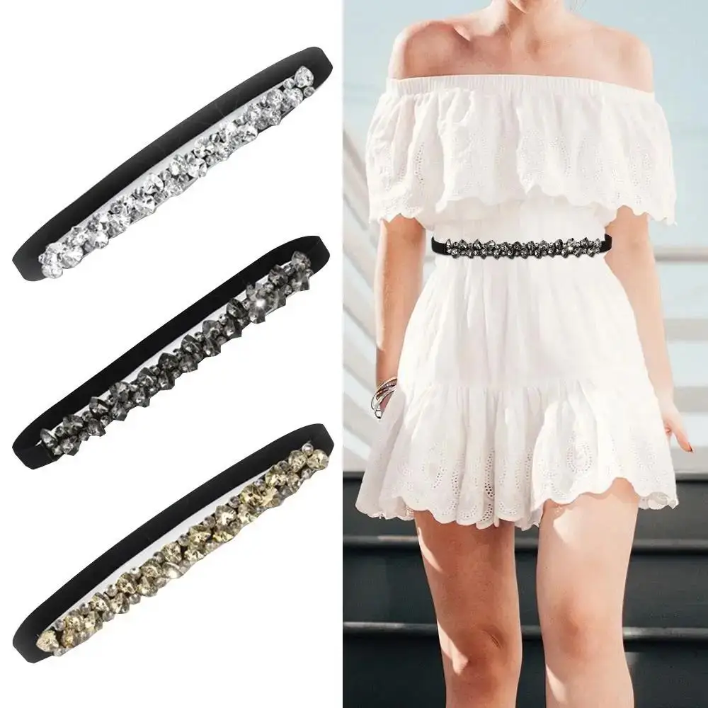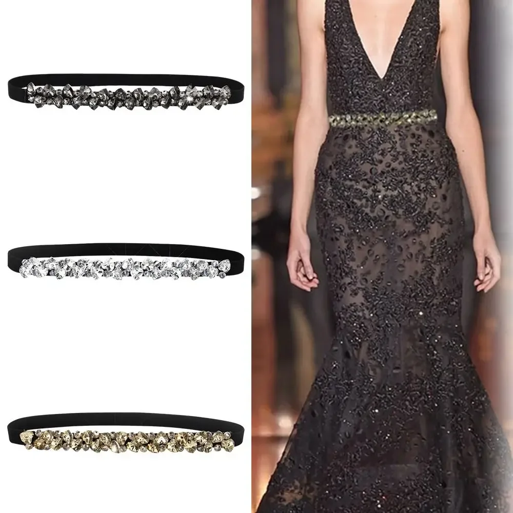 Ceintures en cristal pour femmes, taille élastique brillante, coupe cintrée, strass, luxe pour dames, accessoires de robe