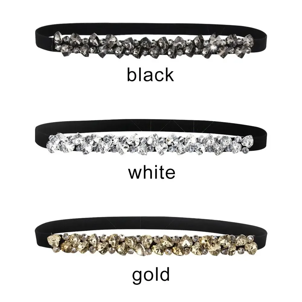 100% neuf et de haute qualité Matériel: strass, tissu extensible Couleurs : noir, blanc, or. Taille : longueur : 65 cm, largeur : 2,5 cm. Convient pour la taille : 60-90 cm. Emballage inclus: 1x ceinture