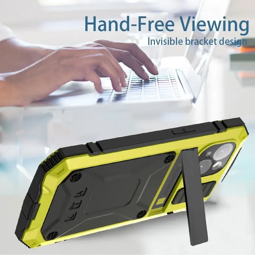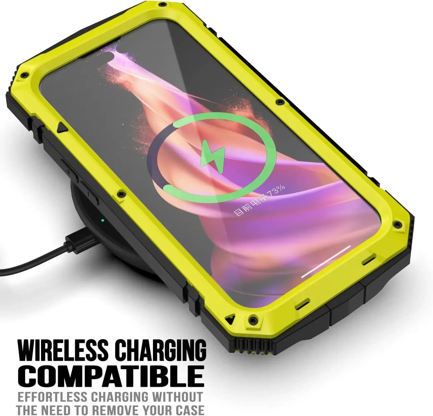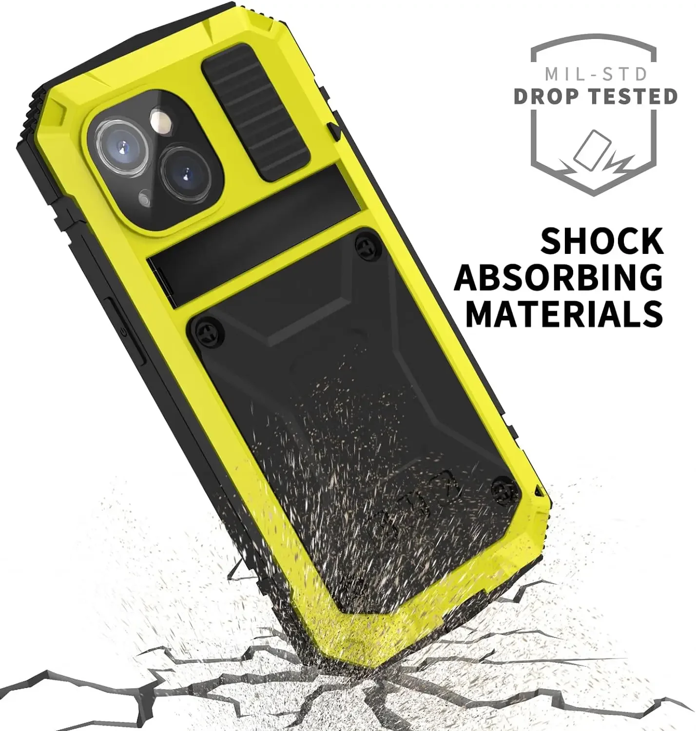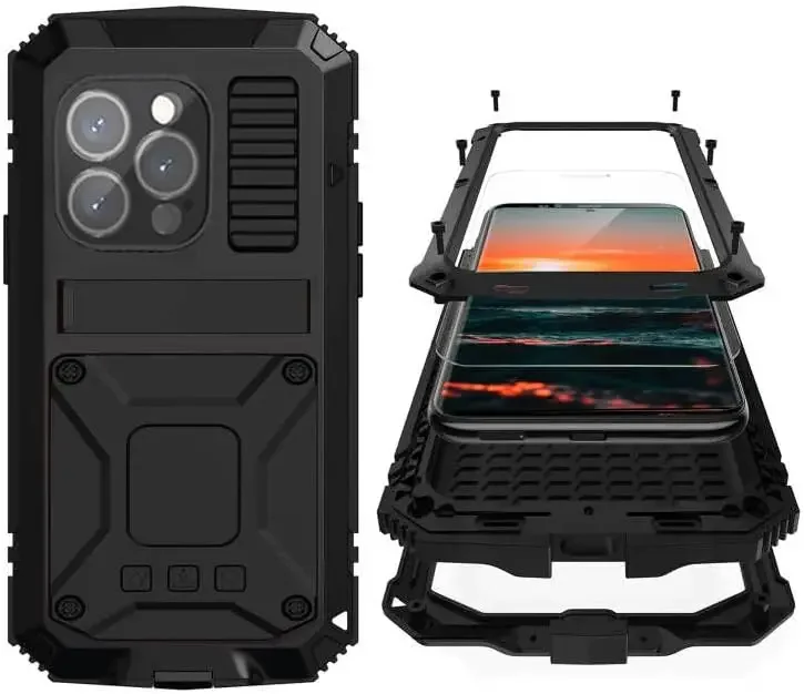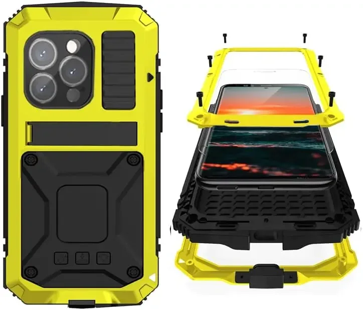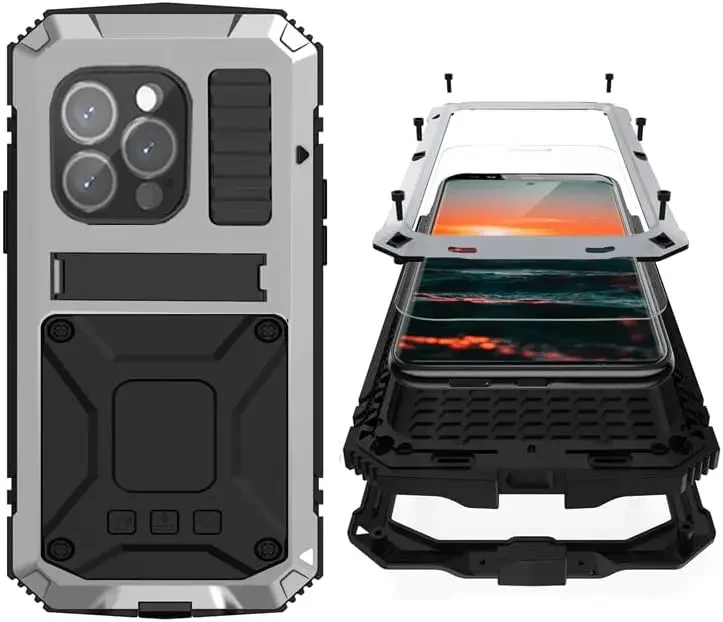 Conçu de qualité militaire avec un cadre métallique en aluminium robuste et supérieur à l'avant et à l'arrière + des matériaux de coussin intérieurs en silicone TPU souple absorbant les impacts à l'avant et à l'arrière + un protecteur d'écran en verre trempé anti-explosion (fixation par six vis) avec une sangle de transport - La coque de protection à 3 couches offre une protection antichoc de qualité militaire jusqu'à 1,8 mètre, empêchant les chutes accidentelles, les chocs et les rayures.Robuste pour s'adapter à tous les environnements difficiles.