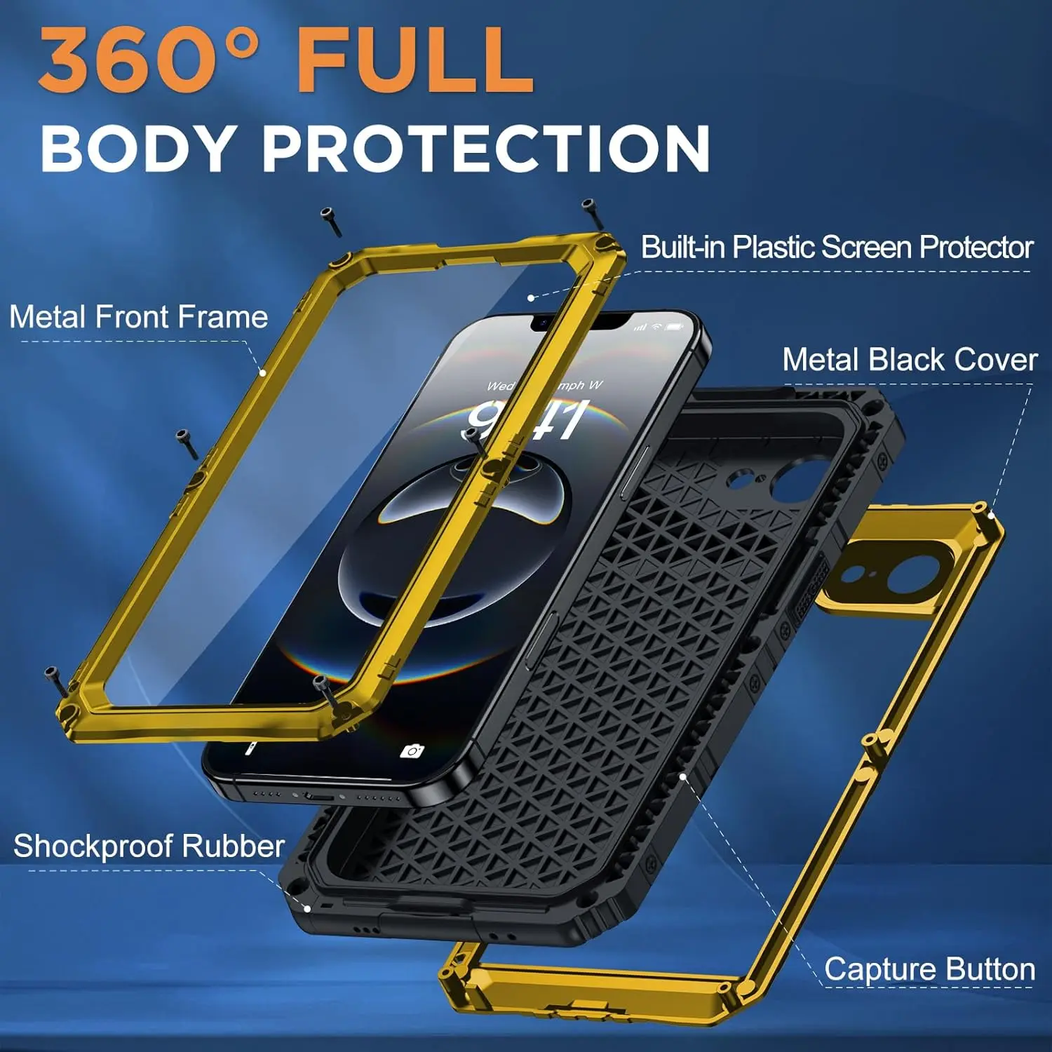 【Résistance aux chocs de qualité militaire】Coque blindée à 4 couches certifiée MIL-STD-810G, testée pour résister à des chutes de 3 mètres/6 pieds plus de 3000 fois.L'alliage d'aluminium durable et les matériaux en silicone souple garantissent que votre téléphone est protégé contre les chutes et les impacts accidentels, ce qui le rend adapté aux environnements difficiles comme les chantiers de construction ou les aventures en plein air.