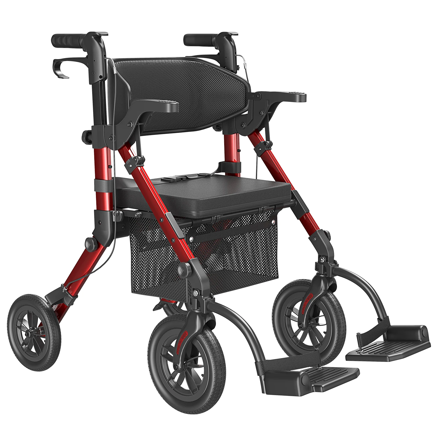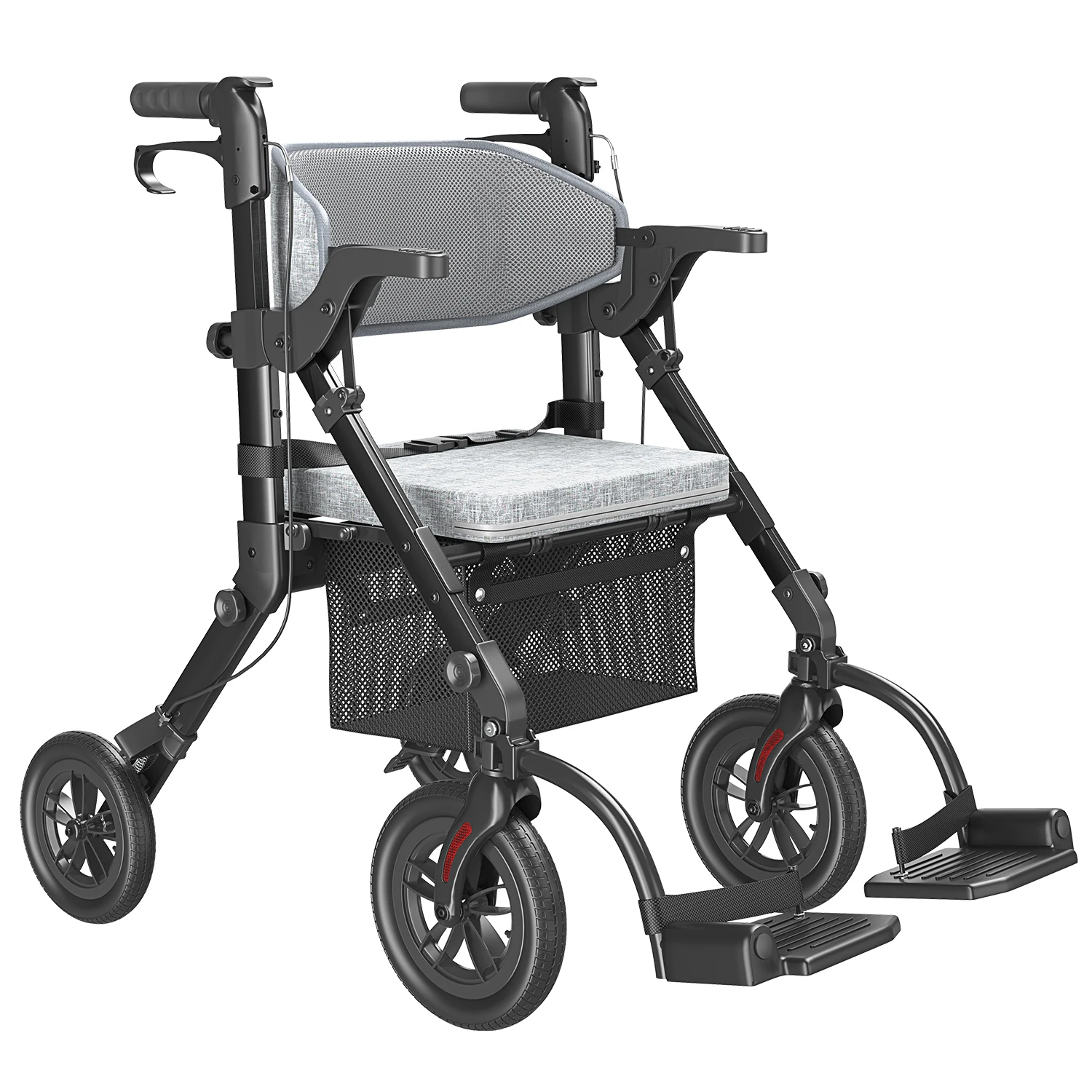Déambiers à roulettes pour personnes âgées avec siège, combo pour fauteuil roulant, fauteuil roulant de transport léger et pliable