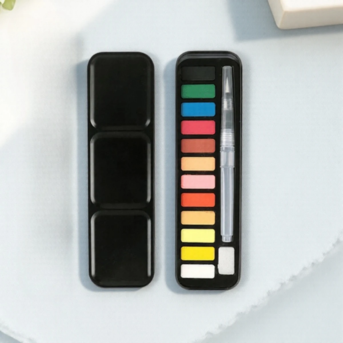 Ensemble de peinture aquarelle solide 12/18/24 couleurs, boîte métallique Portable avec pinceau pour enfants et artistes, fournitures artistiques