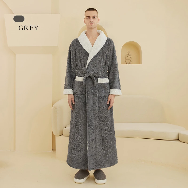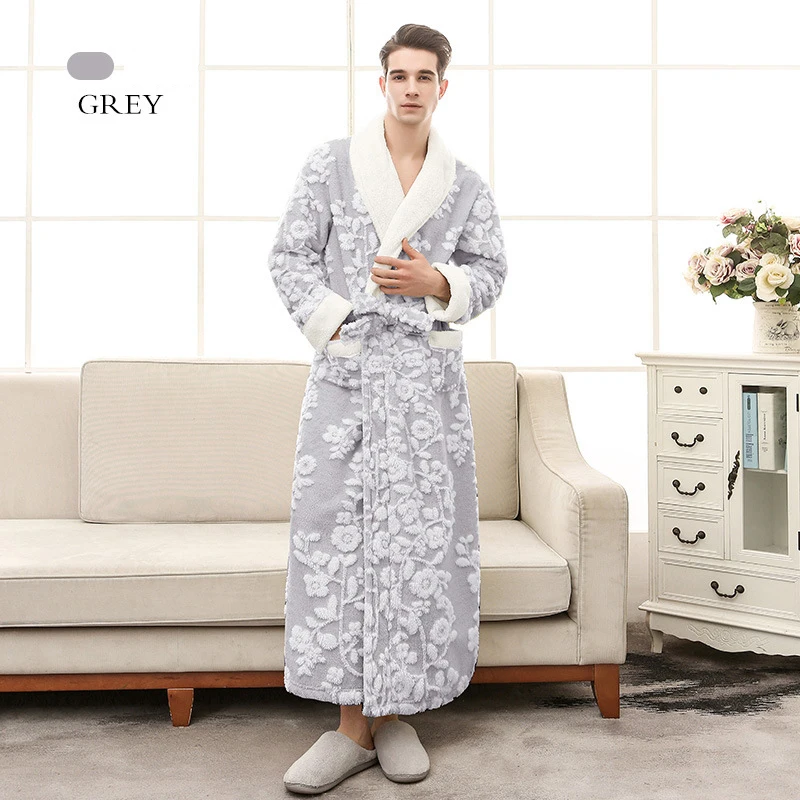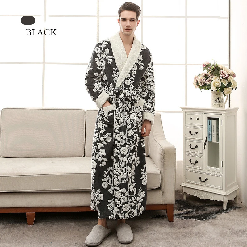 Grande taille épais Jacquard flanelle Robe hommes longue Kimono peignoir Robe automne hiver chaud corail polaire mâle vêtements de nuit vêtements de maison