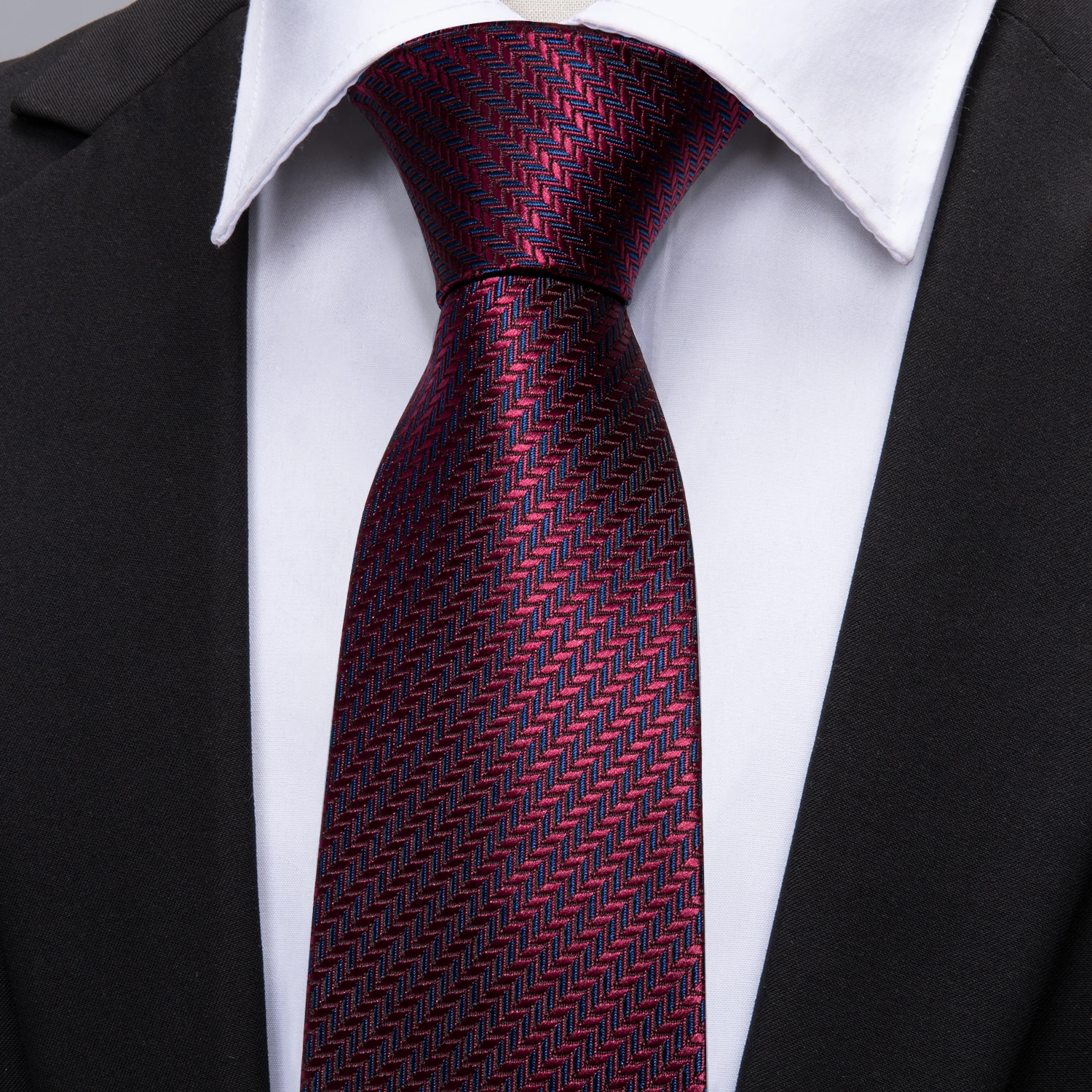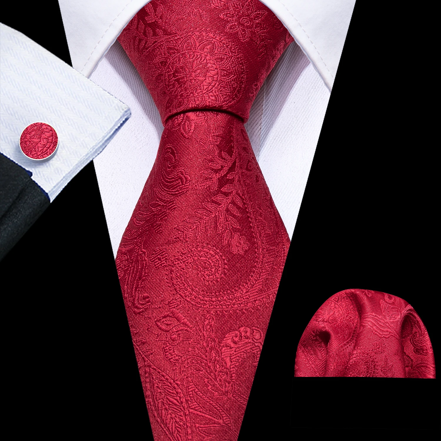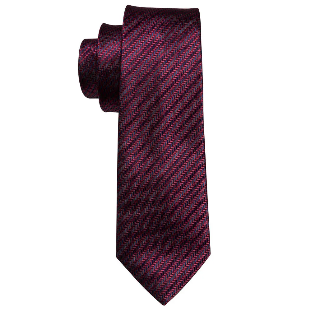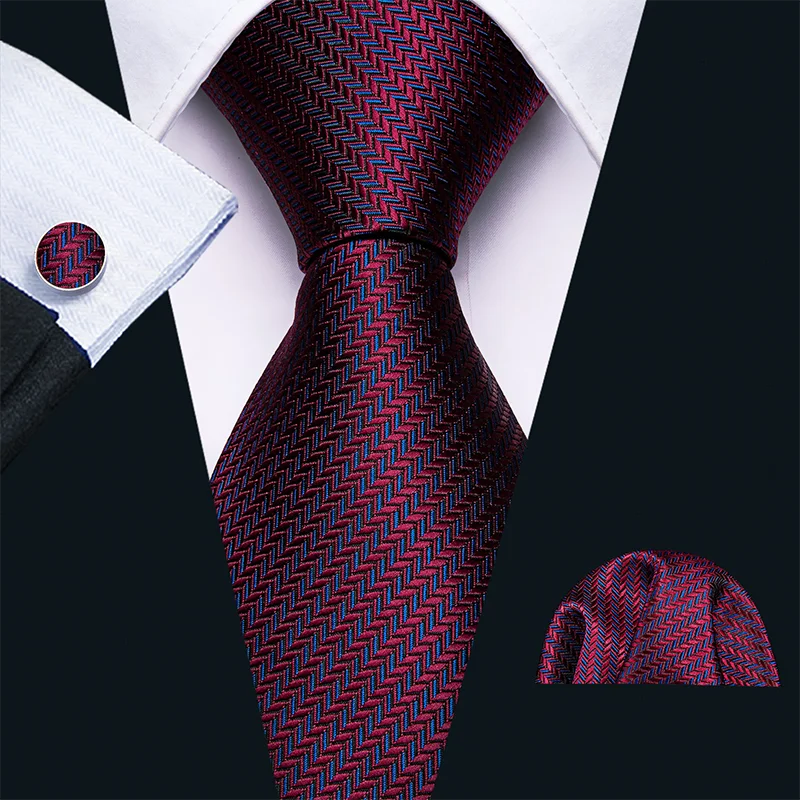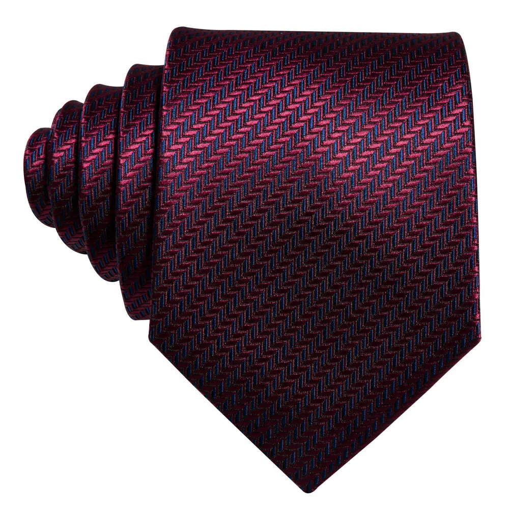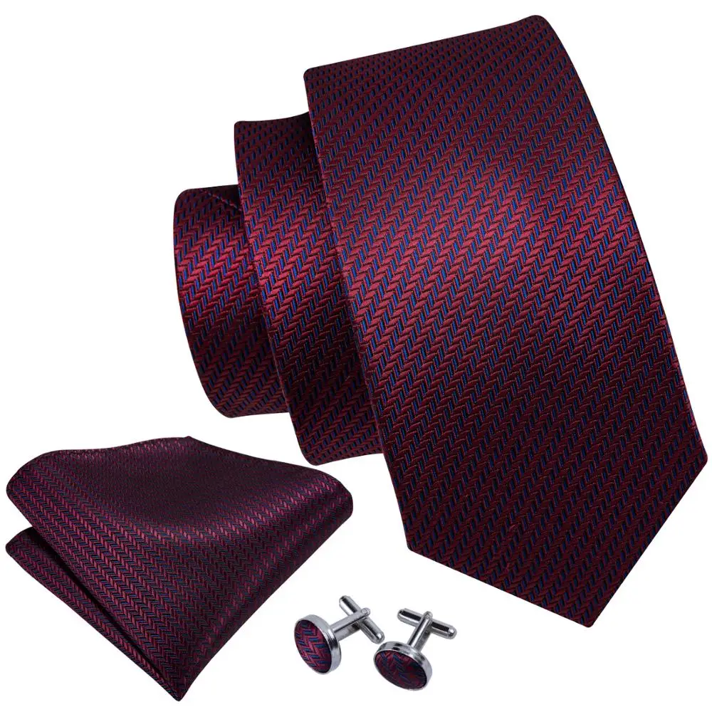 Cravate de mariage en soie rouge Jacquard tissé rayé cravates pour hommes cravate mouchoir bouton de manchette ensemble Barry.Wang FA-5028 de créateur de mode