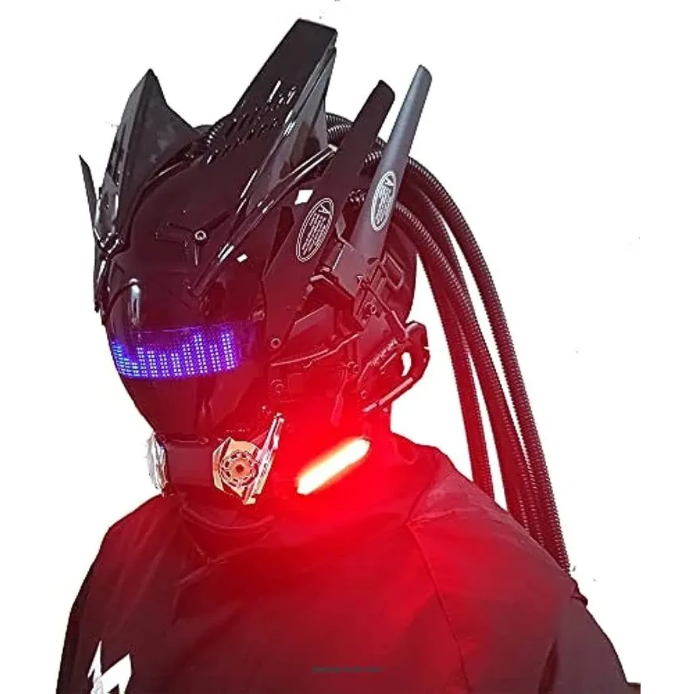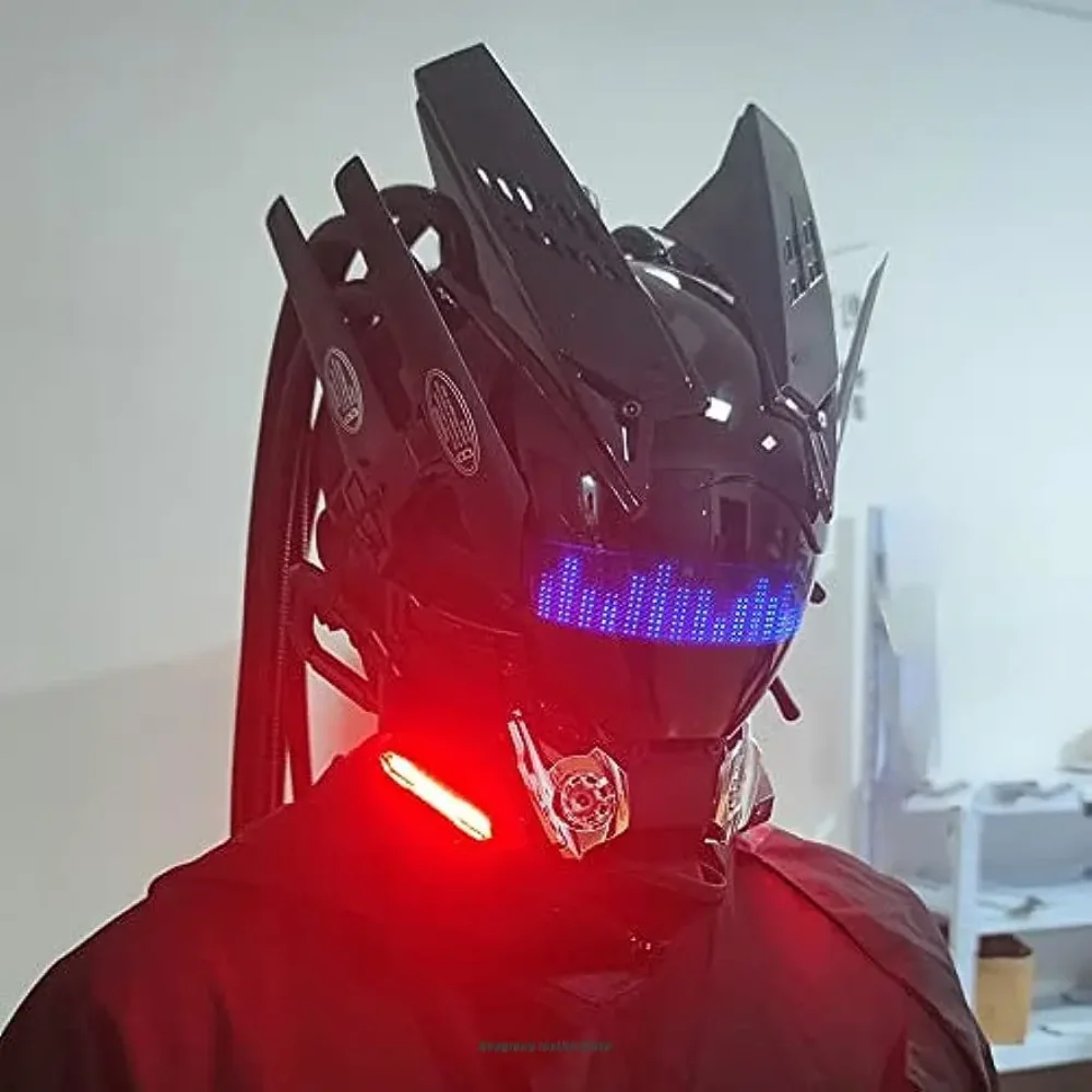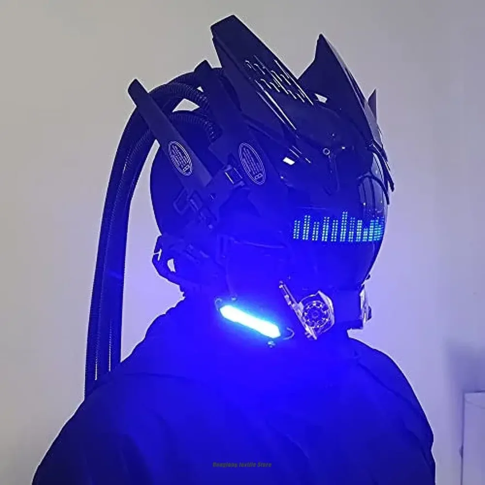 JAUPTO Punk Mask Cosplay pour hommes, masque Techwear APP Bluetooth, accessoire de costume de cosplay d'Halloween avec lampe LED, masque futuriste