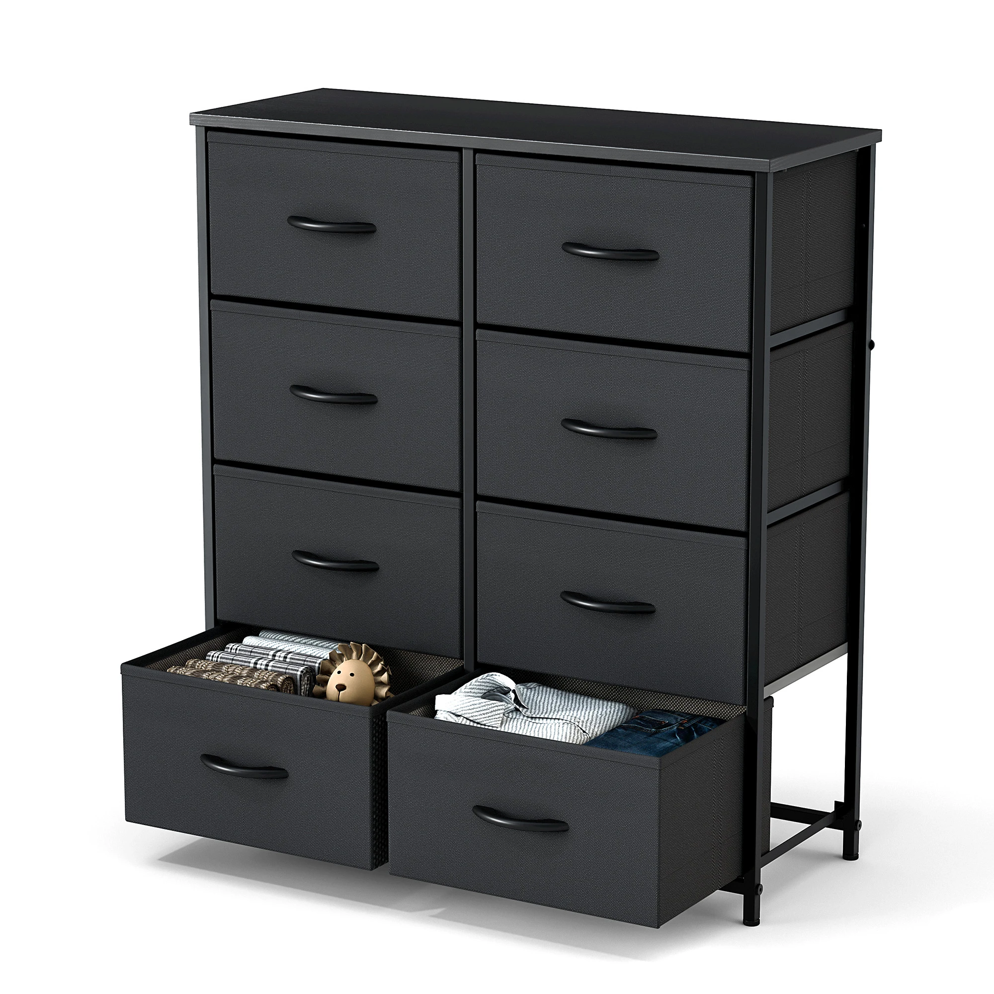 【Attention à la taille COMPLTE】Cette commode de chambre à coucher est dotée de bacs en tissu, offrant un espace de rangement peu encombrant pour les magazines, les vêtements pour adultes ou enfants, les jouets et plus encore. La planche supérieure en bois peut supporter jusqu'à 66 livres et peut même servir de support de télévision. Veuillez confirmer les dimensions de cette commode à 8 tiroirs: 11.81 & #34; D x 31.4 & #34; L x 36.3 & #34; H.