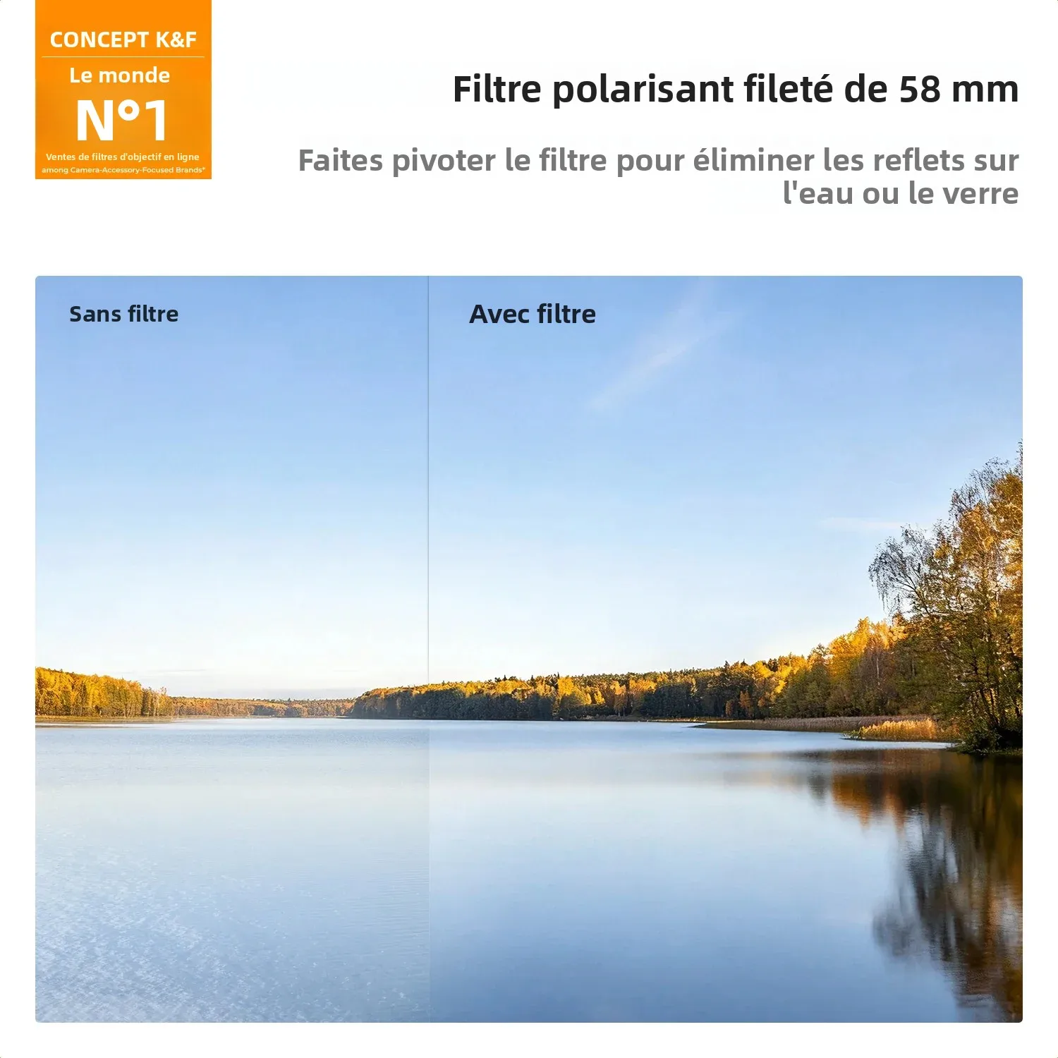 Filtre CPL 58 mm : Améliore les couleurs et le contraste