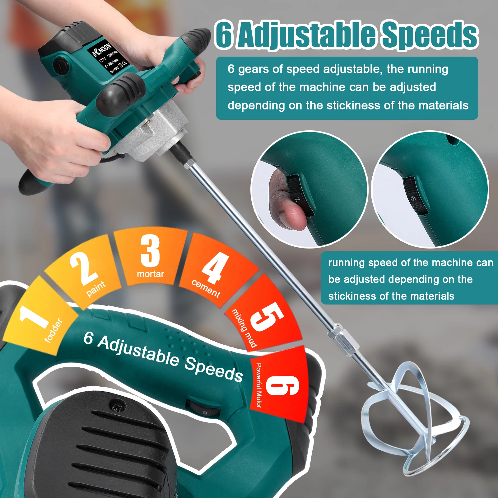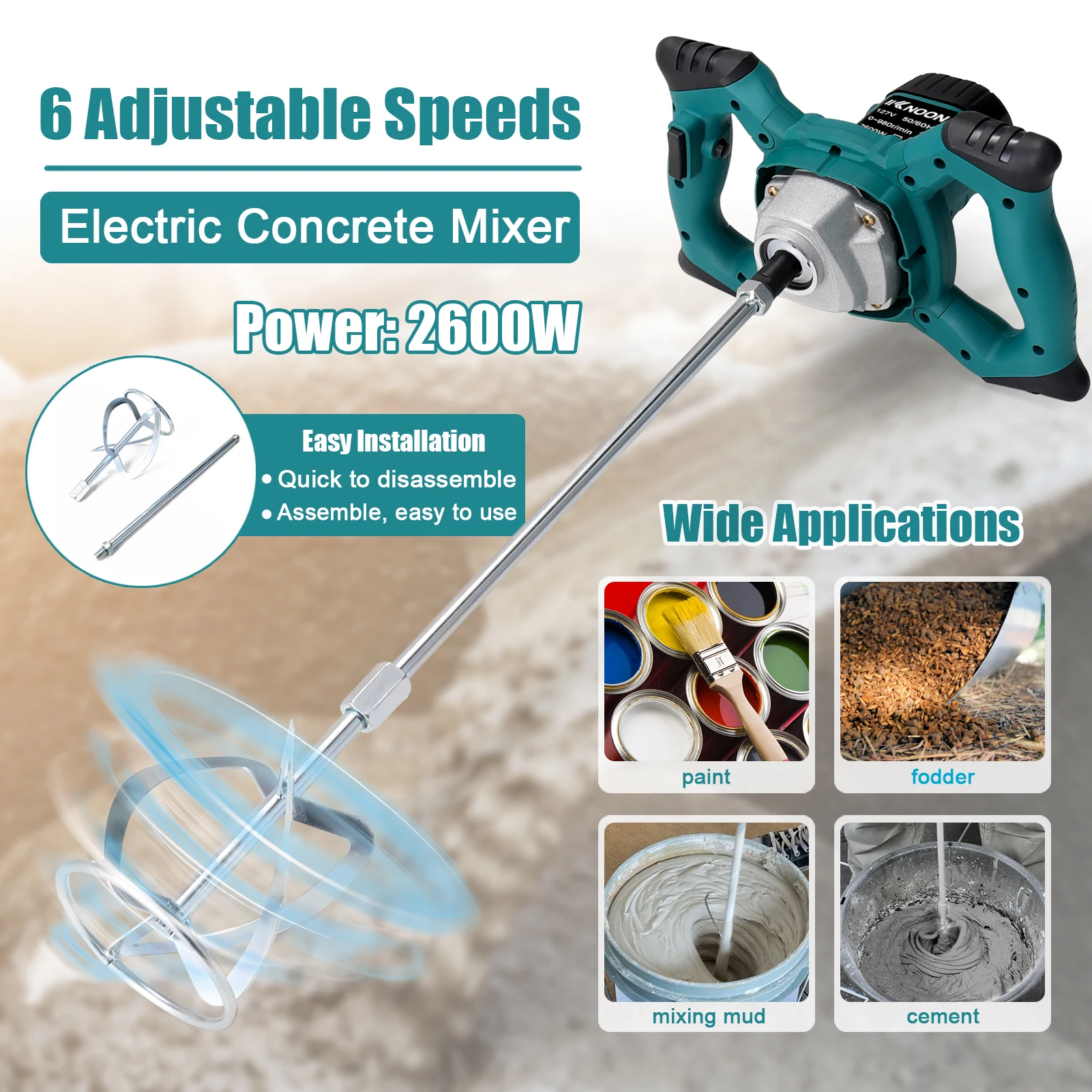 KKnoon 2600W bétonnière électrique Portable béton ciment mélangeur 6 vitesses réglable mélangeur
