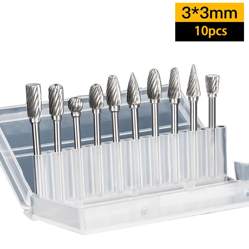 LIDIAO – jeu de fraises rotatives en carbure à tige de 3mm, jeu de limes rotatives, mèche de meulage à Double coupe pour acier, bois, métal, outil de polissage
