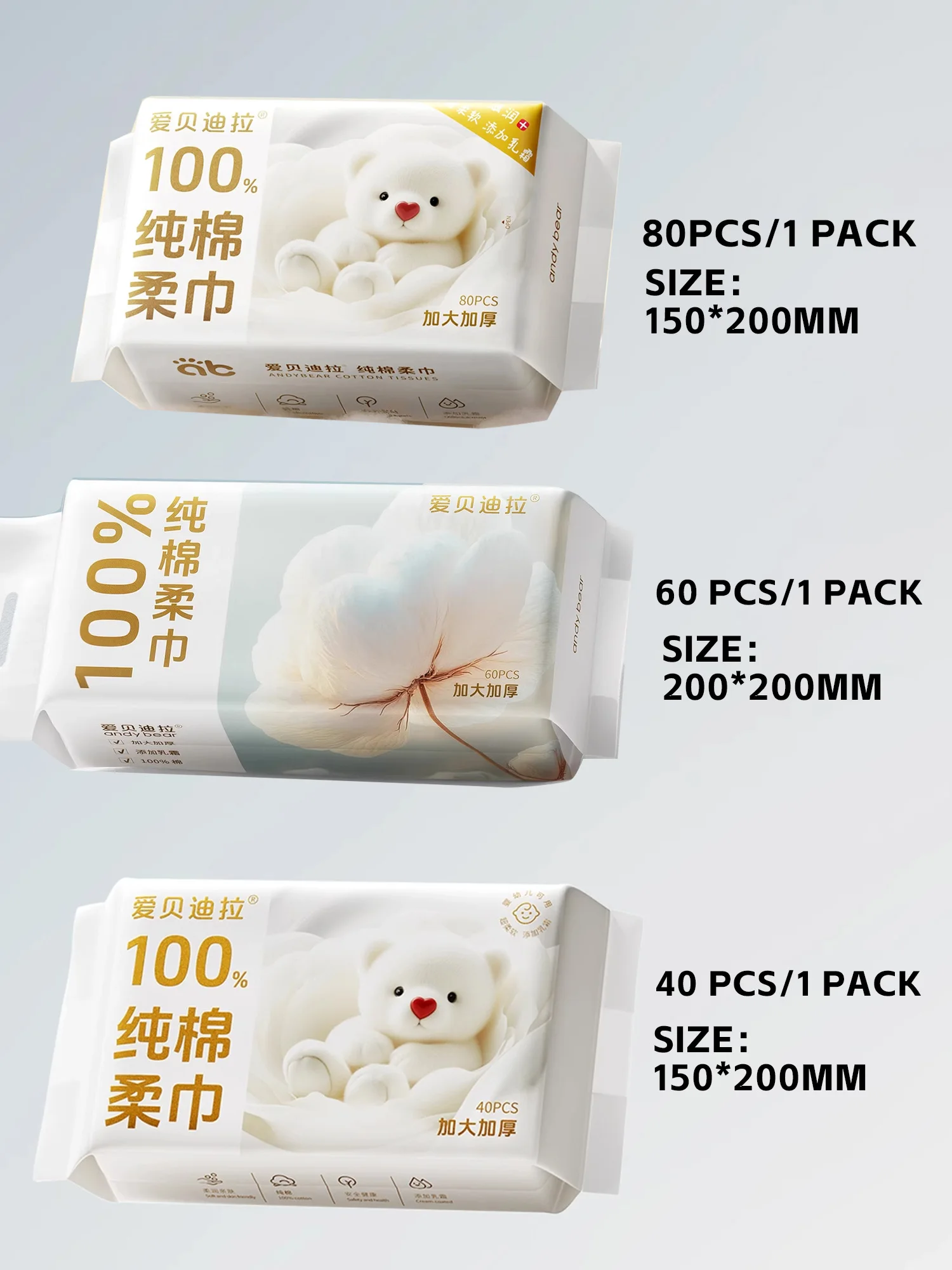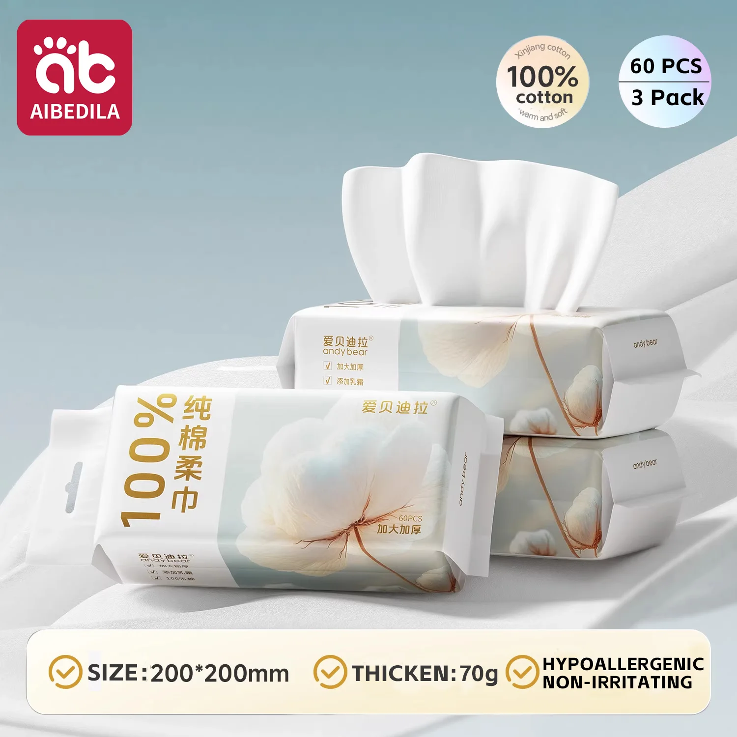Lingettes sèches en coton pour nouveau-né, non parfumées, hypoallergéniques, 3 en 1, soins propres, protection des peaux épaisses et sensibles, serviettes pour nourrissons