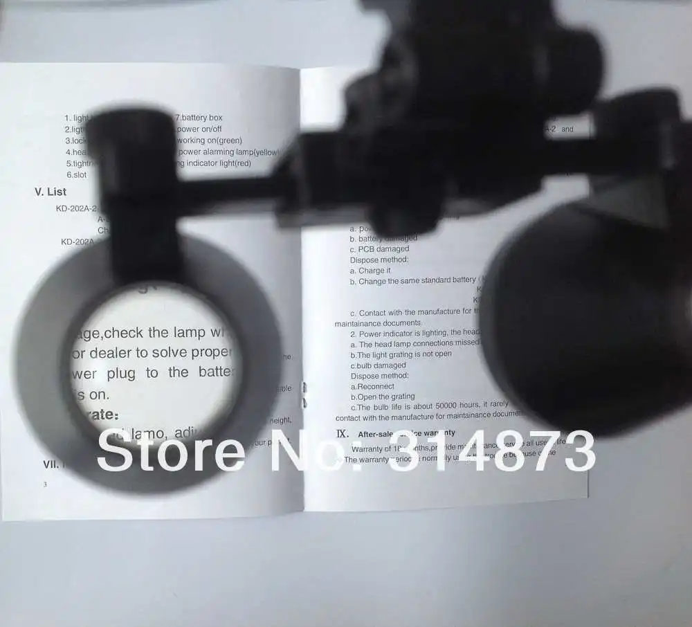 Spécifications des loupes 3,5X : champ de vision : 60-65 mm.Angle de vision : 20-150Profondeur de champ : 80 mm
