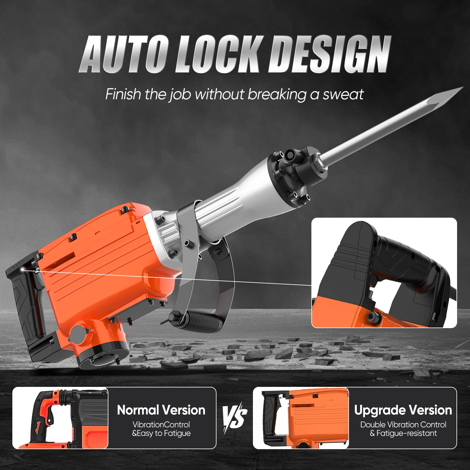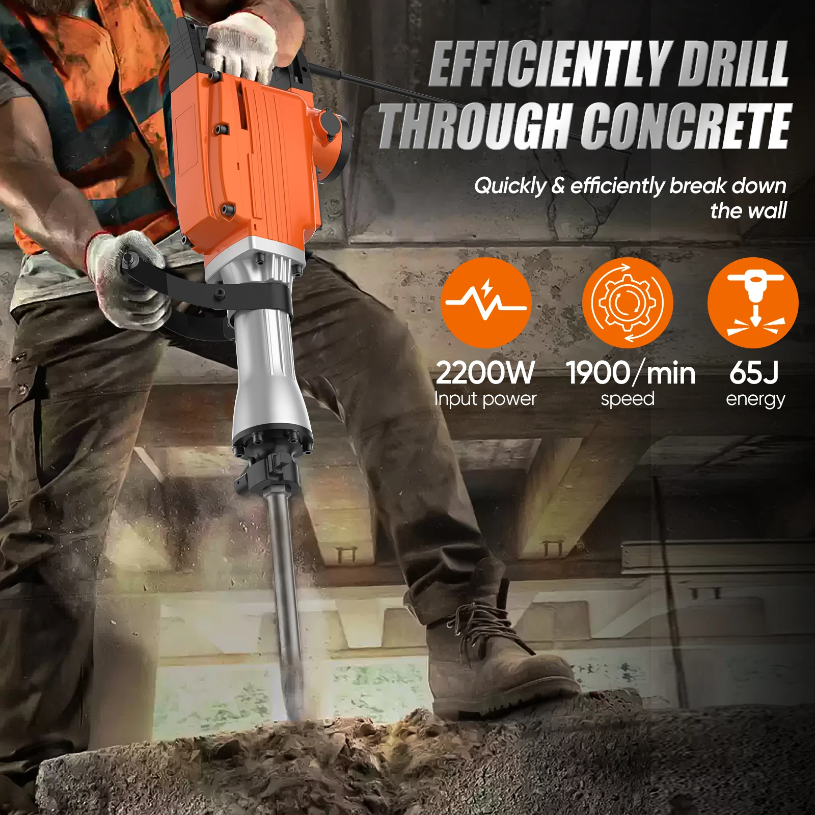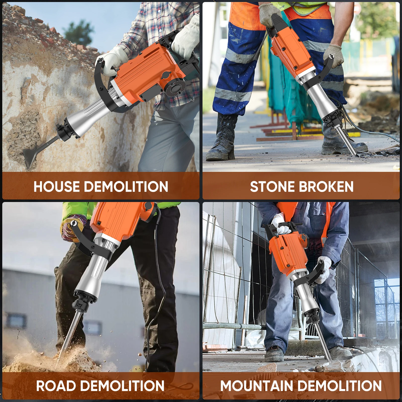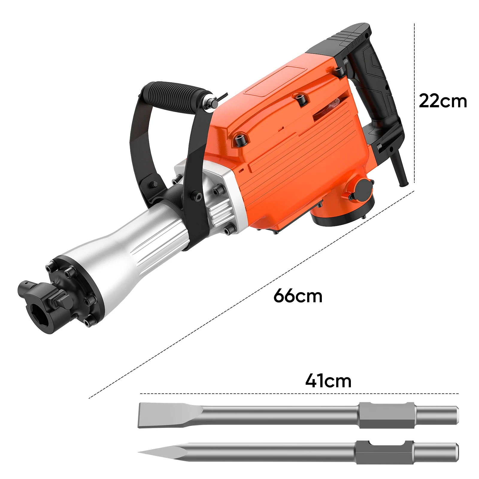 Marteau à cric de démolition 2200W, marteau à cric, brise-béton, marteau à cric électrique robuste, 2 ciseau