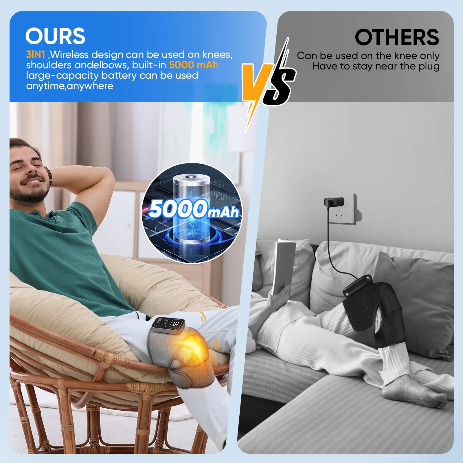 【Chauffage réglable】 : notre masseur chauffe rapidement en seulement 3 secondes, vous pouvez sentir la chaleur en 5 secondes et offre 3 réglages de température réglables.Vous pouvez régler la température de chauffage du masseur de genou chauffant en fonction de vos besoins pour obtenir l'effet le plus confortable et garder vos genoux au chaud.