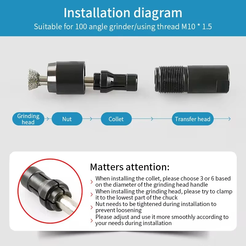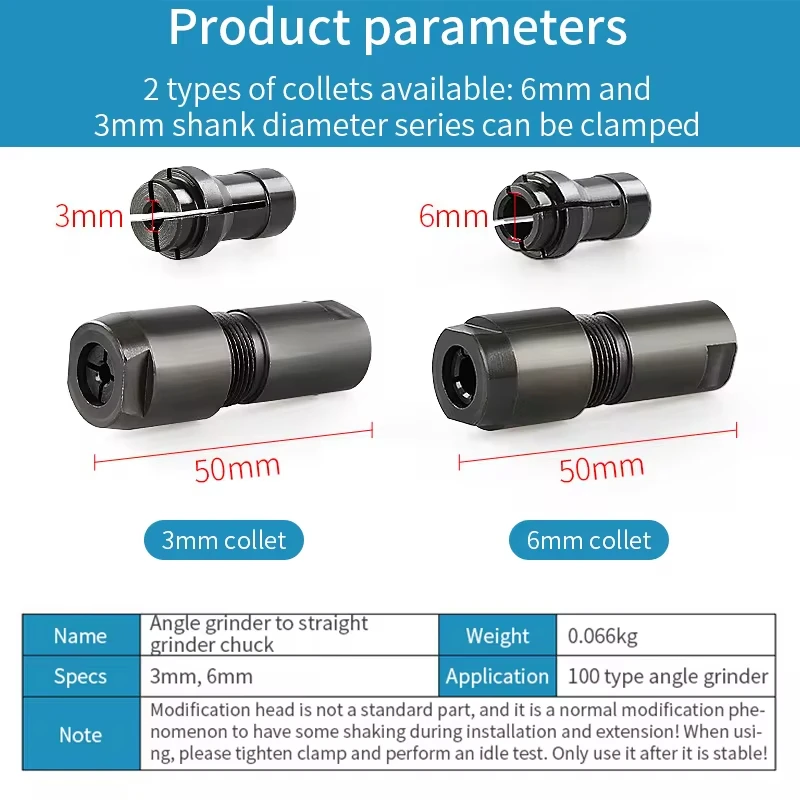 * Disponible en 2 spécifications, 3 mm/6 mm, qui peuvent contenir une variété de mèches de meulage.