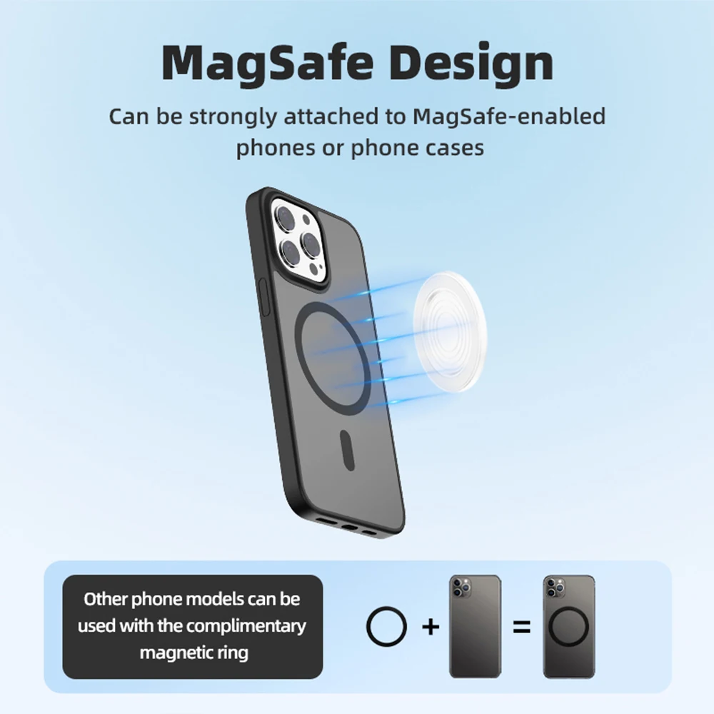 3.Peut être fermement fixé aux téléphones ou aux coques de téléphone compatibles MagSafe. D'autres modèles de téléphone peuvent être utilisés avec l'anneau magnétique gratuit.