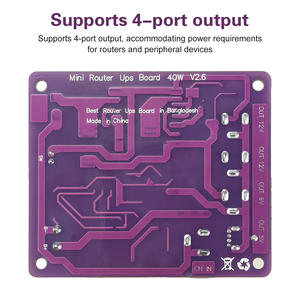 Module d'alimentation sans interruption 40W 5-12V, 4 canaux de sortie, carte de charge de batterie, module d'alimentation UPS pour routeur, indicateur de batterie