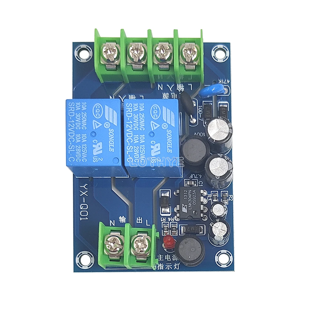 Module de commutation d'alimentation automatique à 2 canaux, 220V, 10a, double entrée, commutateur de mise hors tension, carte de transfert, alimentation de secours d'urgence