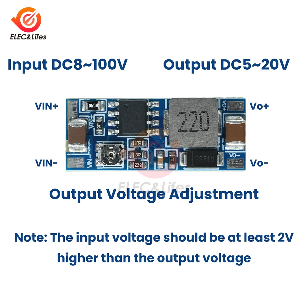 Tension d'entrée : 8 V ~ 100 V (l'entrée doit être supérieure à la sortie)