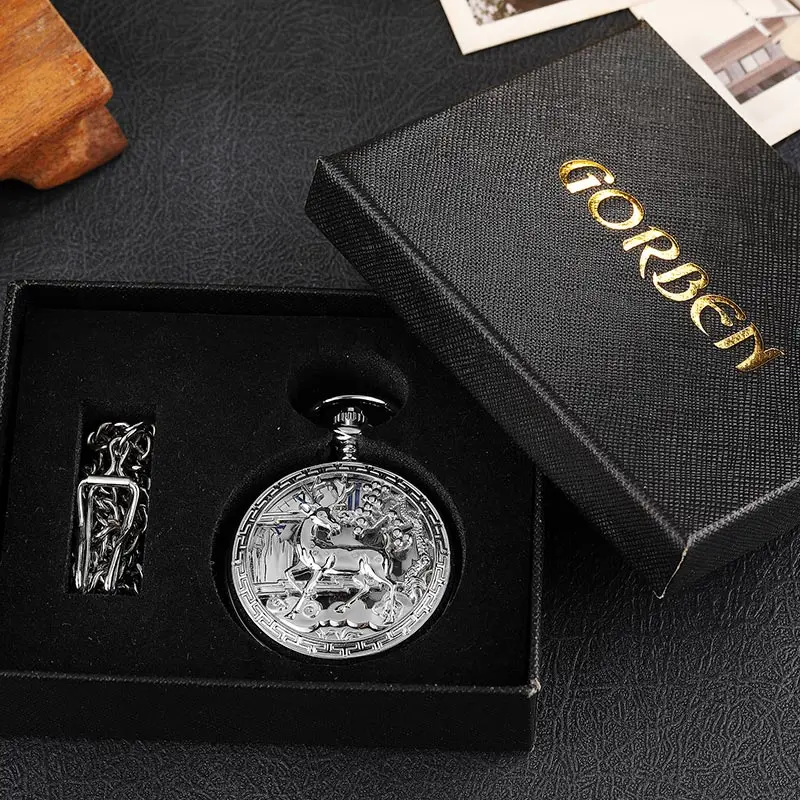 Montre de Poche Mécanique à Motif de Cerf Creux localité pour Homme et Femme, Double Face, Steampunk, Vintage