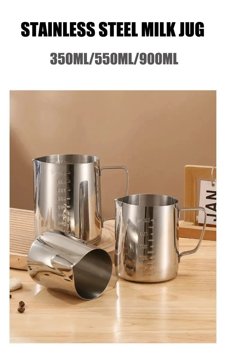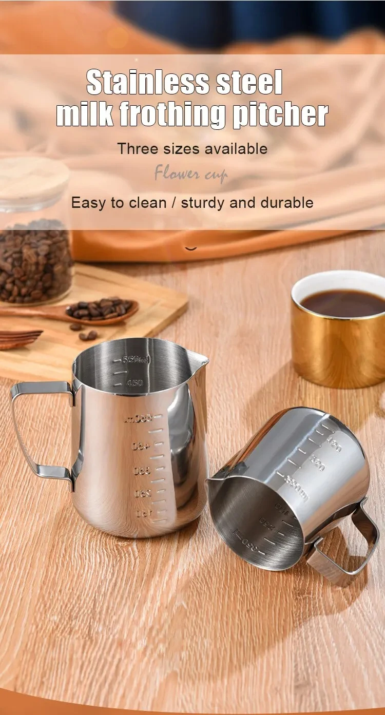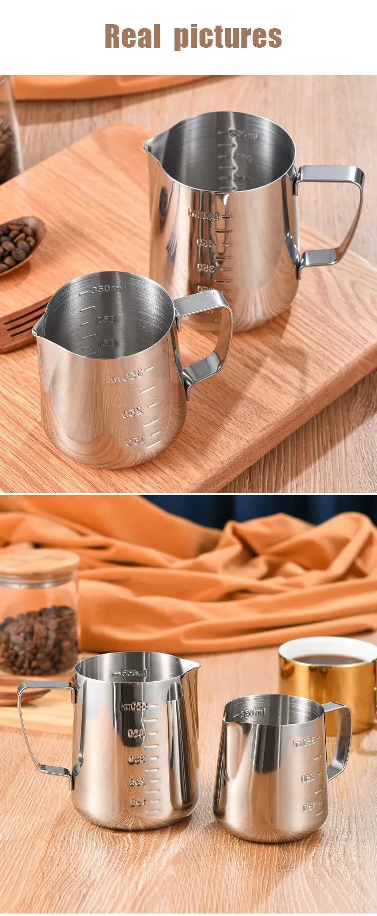 Pichet à mousse de lait en acier inoxydable, mousseur argenté, récipient à café Latte, pichet en métal, tasse Barista