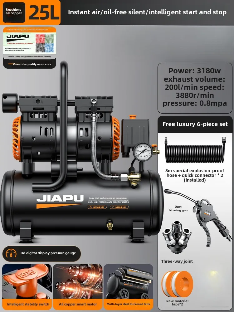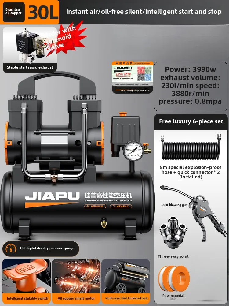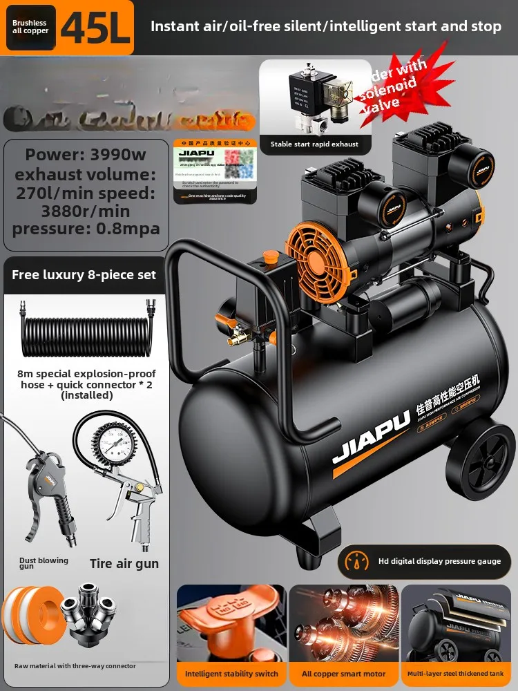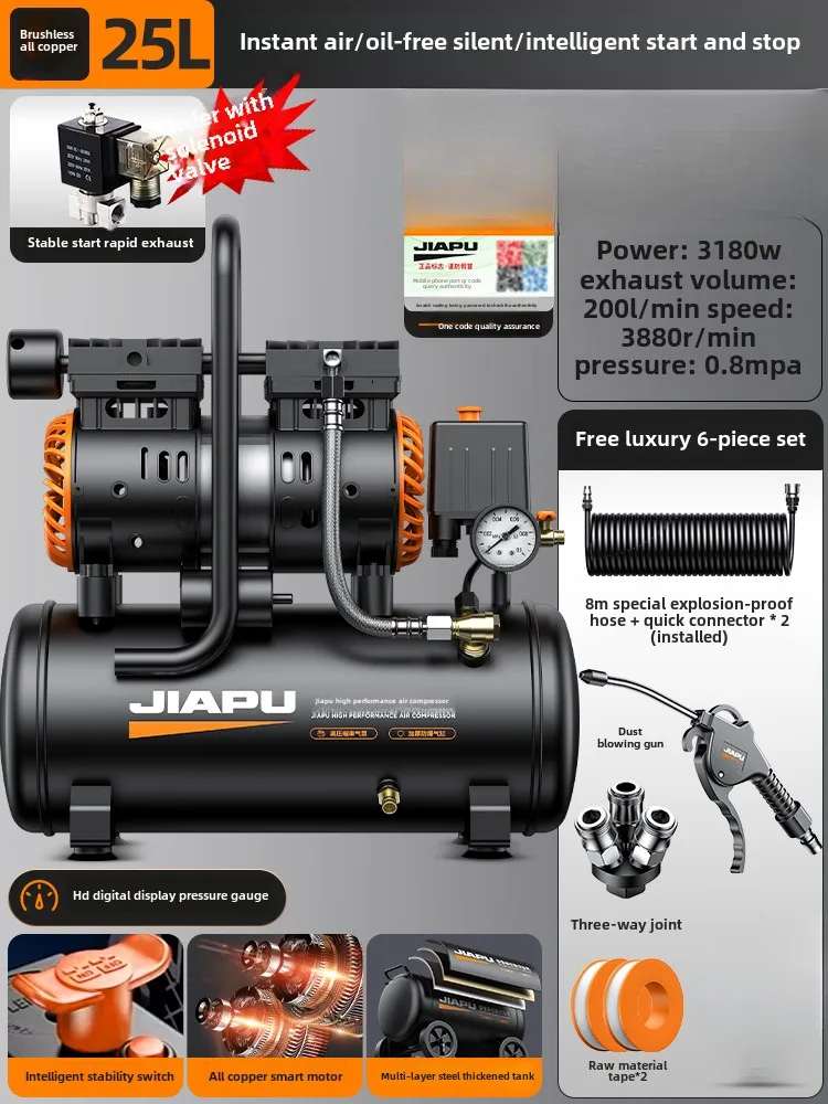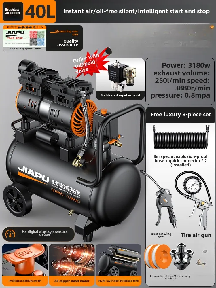 Pompe de compresseur d'air de qualité industrielle 220V, Mini pompe à Air silencieuse sans huile pour la gonflage des pneus de voiture
