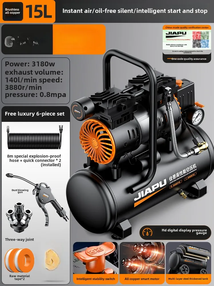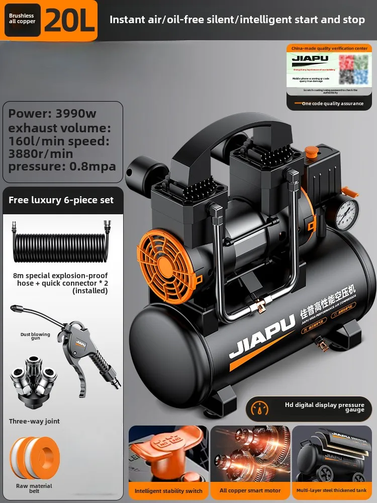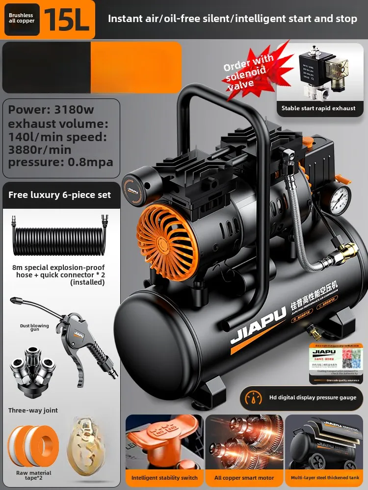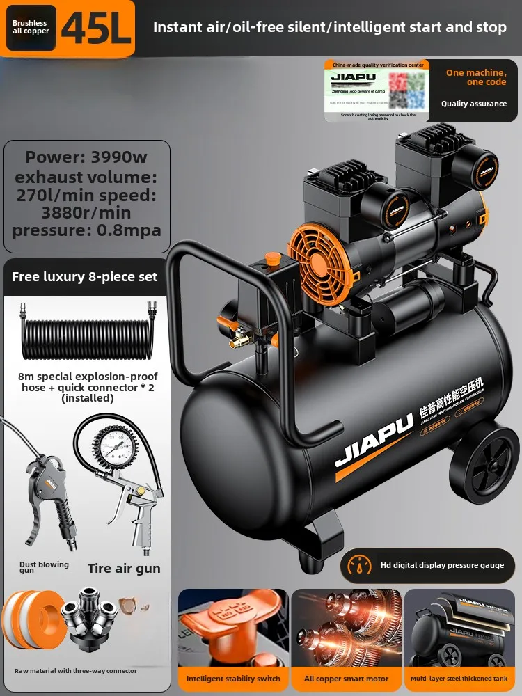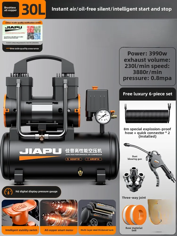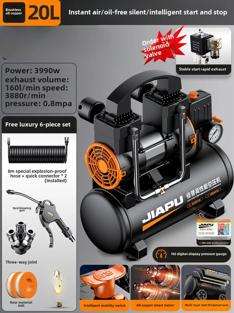 Pompe de compresseur d'air de qualité industrielle 220V, Mini pompe à Air silencieuse sans huile pour la gonflage des pneus de voiture