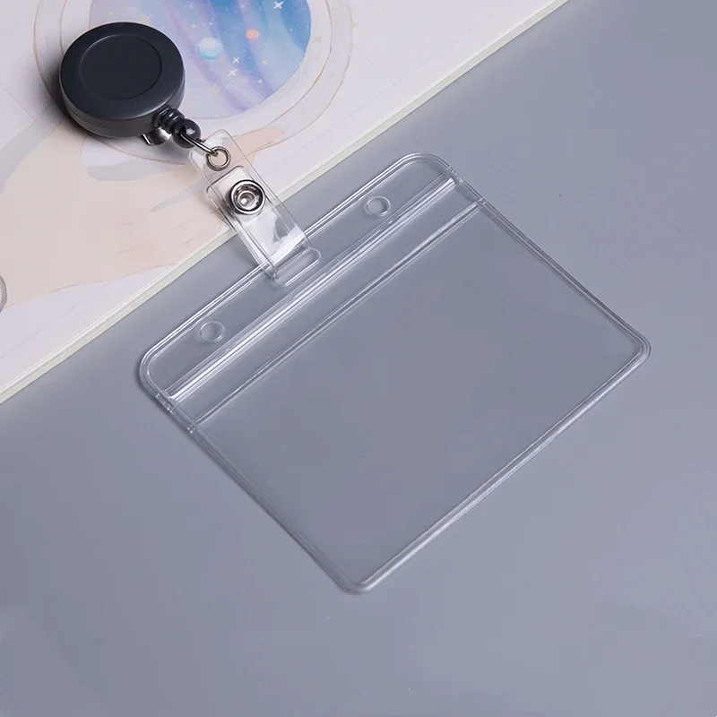 Porte-carte de travail du personnel transparent avec sangle de cou, clip rétractable, bobine d'insigne, étui de couverture de carte d'employé, lanière, carte d'identité, nom