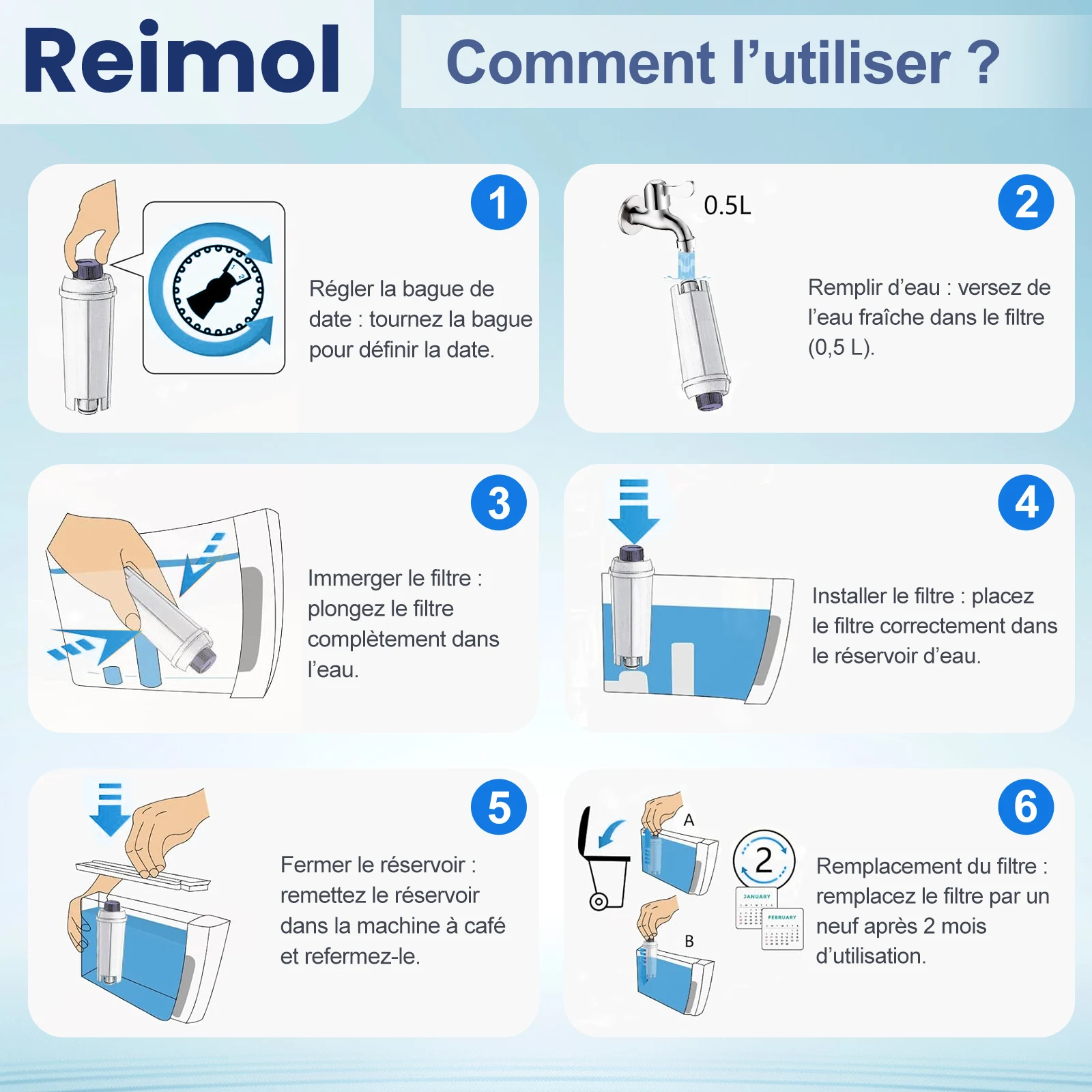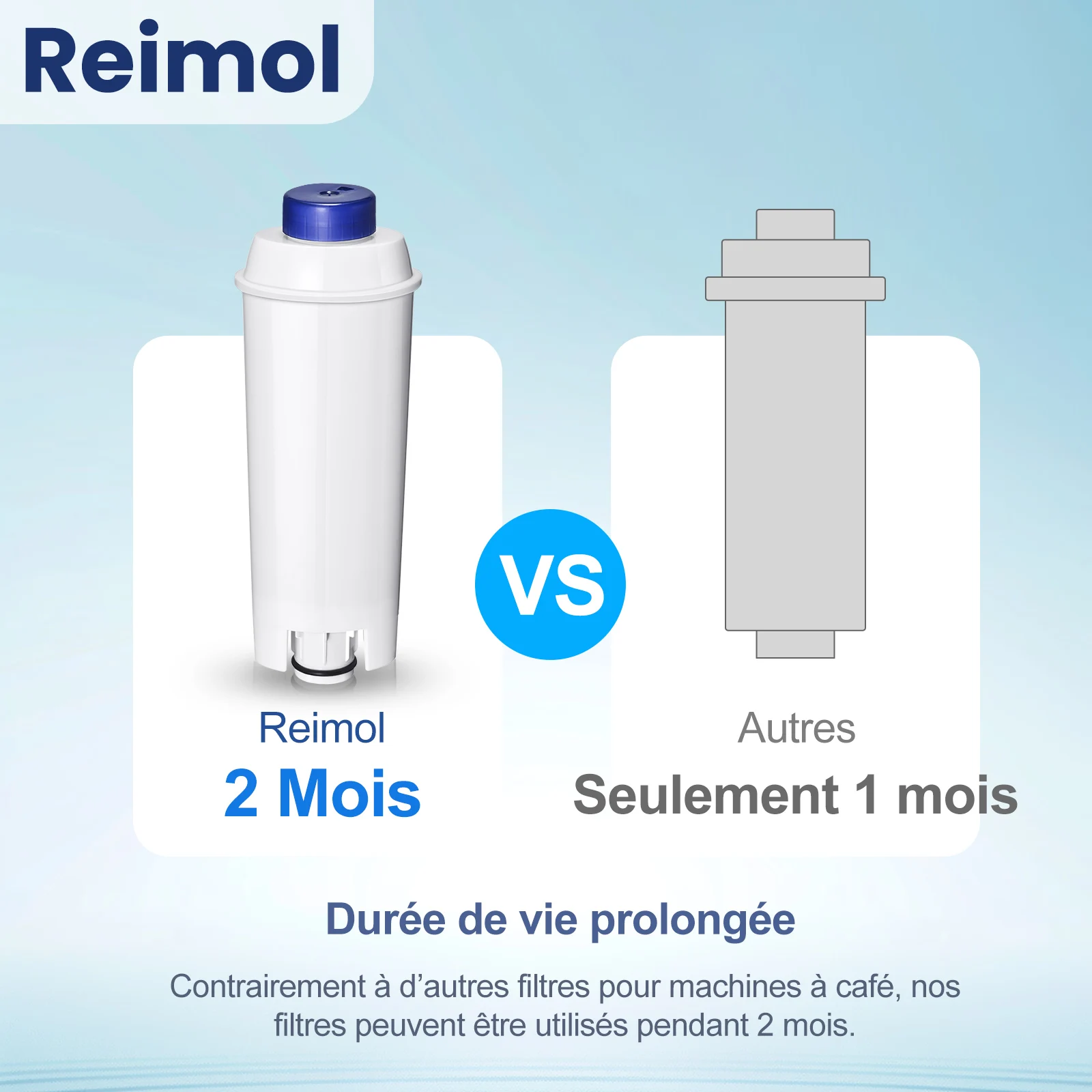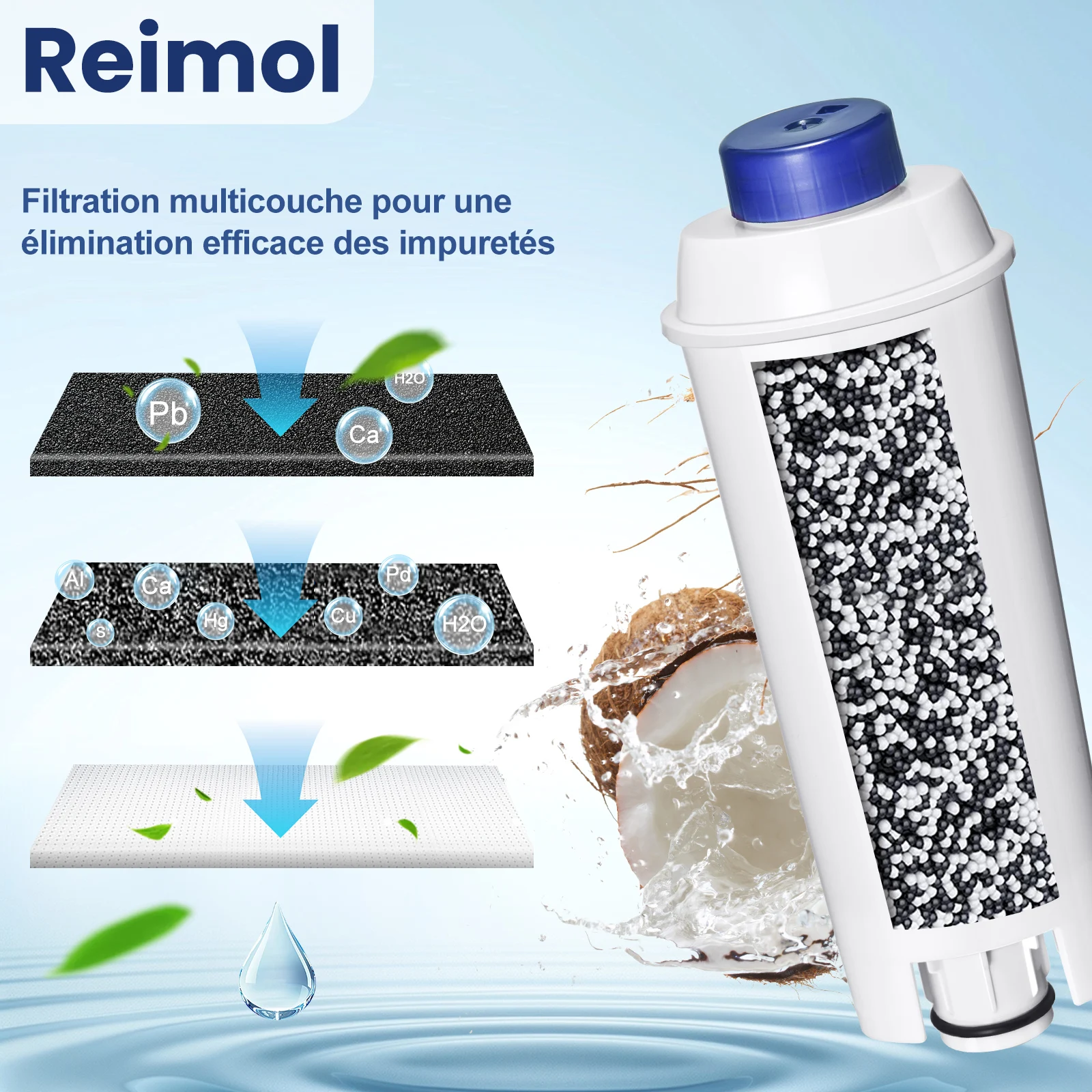 Reimol 6 Pcs Machine à Café Filtres pour Delonghi Magnificas,Dinamica,ECAM,ESAM,ETAM,Primadonna,BCO,EC Serie Machine à café, Cartouches de Filtre à eau pour Delonghi, Adoucir l'eau