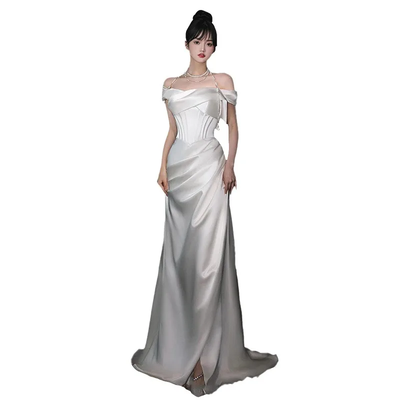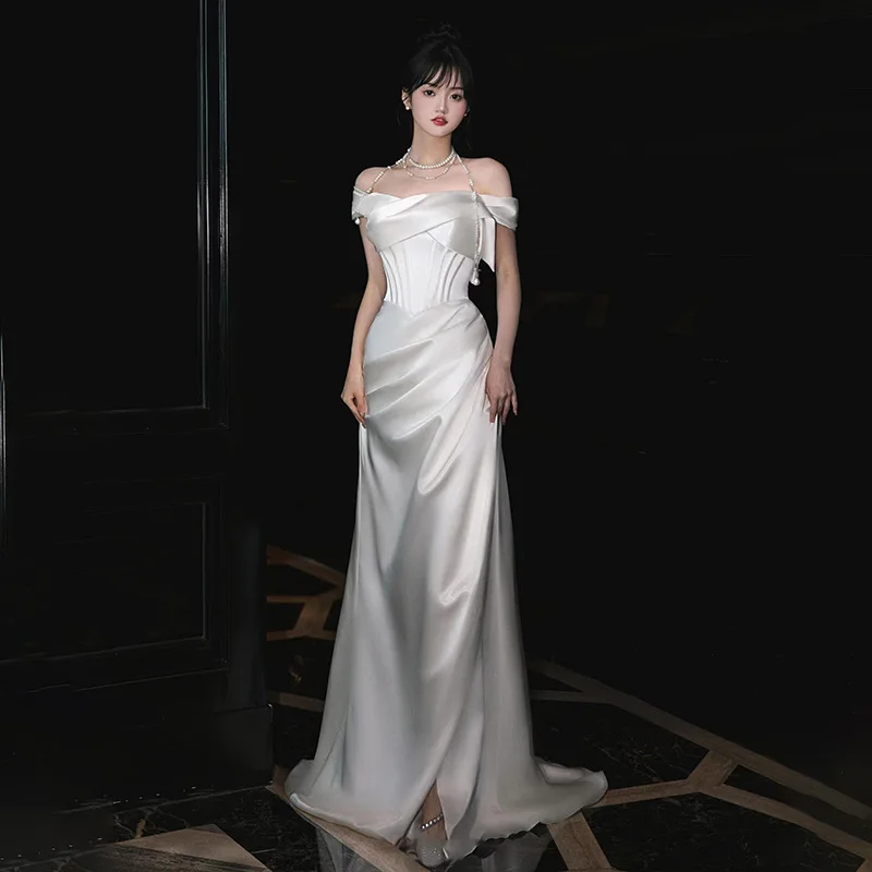 Robe de mariée légère asymétrique épaule dénudée, mode fiançailles, fil blanc, luxe, Style Banquet, robe de soirée, nouvelle collection