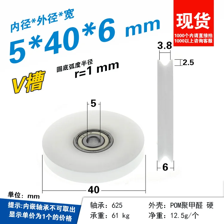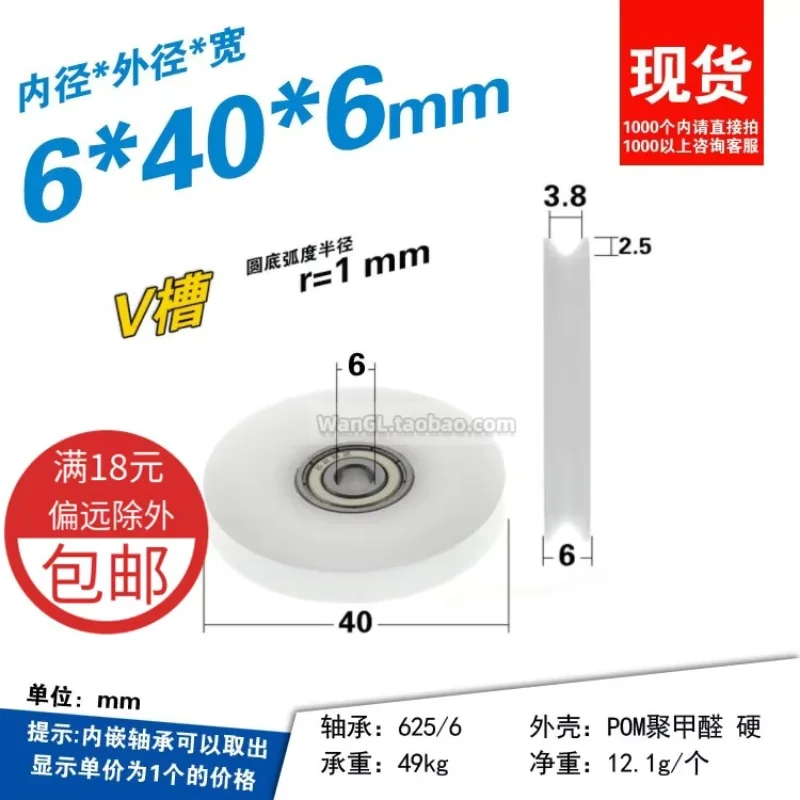Roue de guidage 6x40x6mm, câble en acier, roue de suspension à fil fin, roue en plastique à rainure en V, roue de passage de fil de 2mm, 10 pièces