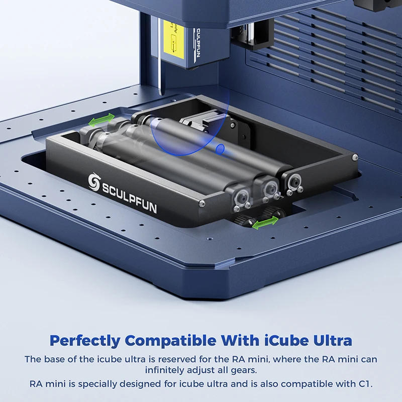 SCULPFUN RA mini rouleau rotatif 360 Objets cylindriques de gravure rotatifs pour Machine de gravure Ultra Laser C1 iCube iCube
