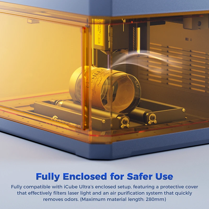 Ce rouleau rotatif RA Mini est adapté aux séries Sculpfun iCube Ultra, aux séries iCube et C1.Avec une conception d'optimisation ciblée, il garantit la compatibilité matérielle et la correspondance des fonctionnalités, offrant une solution de gravure exclusive et réalisant les besoins de gravure d'objets cylindriques.
