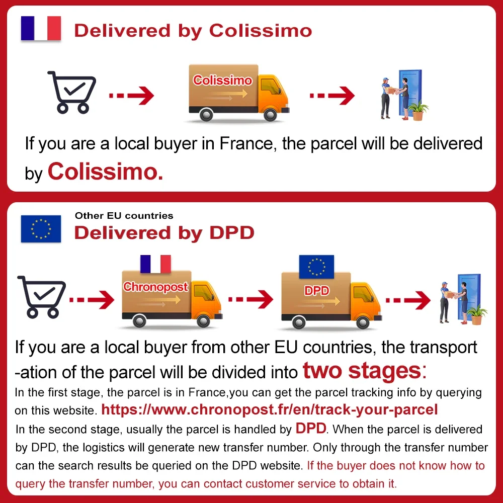 * Nous envoyons la cargaison depuis l'entrepôt français, à l'exception du coût de la commande, vous n'avez pas besoin de payer d'autres frais.Tous nos produits sont en version européenne, prennent en charge le travail dans la zone européenne
