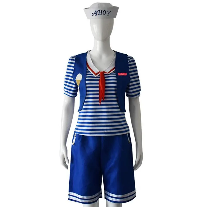 Robin comprend gilet + haut + pantalon + casquette, Steve comprend haut + pantalon + casquette