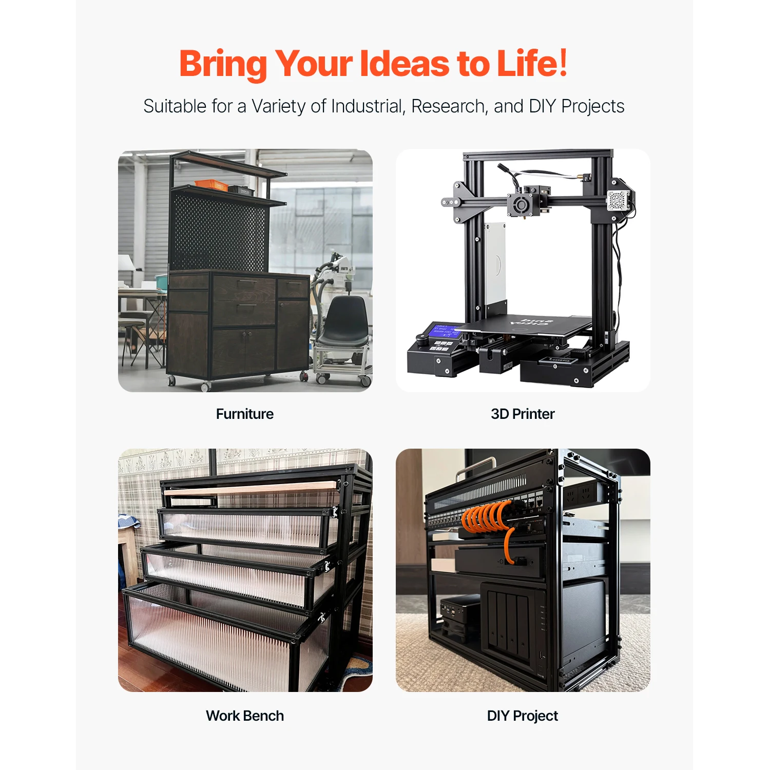 Rail linéaire d'extrusion à fente en T 4040 Le rail linéaire en aluminium extrudé offre une grande évolutivité : construisez et personnalisez rapidement différentes structures et configurations pour répondre à vos besoins. Caractéristiques et détails 【Rail Linéaire 4040 T – Norme Européenne】: Notre rail d'extrusion en aluminium comprend 4 rails en alliage d'aluminium (600 mm / 23,62 po chacun ou 1000 mm / 39,37 po chacun) – tout ce dont vous avez besoin pour une installation facile ! 【Construit pour durer】 : le rail linéaire anodisé est fabriqué à partir d'un alliage d'aluminium 6063-T5 durable avec une finition anodisée pour une excellente résistance à la corrosion.Qu'il fasse humide ou sec, ces rails sont conçus pour résister à l'épreuve du temps. 【Lisse et précis】 : coupé avec une haute précision pour des surfaces lisses et sans bavures.Cela signifie moins de friction, un fonctionnement plus fluide et des performances plus fiables.Vous remarquerez la différence en termes d’efficacité et de coûts de maintenance réduits. 【Facile à personnaliser】: La conception à rainure latérale est compatible avec les écrous à rainure en T M6, M8, les poulies et plus encore, ce qui facilite grandement l'assemblage.Idéal pour vos projets de bricolage et vos constructions rapides. 【Polyvalent pour tout projet】 : légers et flexibles, ces rails linéaires peuvent être utilisés dans une variété de projets sans avoir besoin de soudure.Qu'il s'agisse d'une imprimante 3D, d'un équipement d'automatisation, d'un établi ou de meubles, ce rail linéaire est prêt à vous aider à créer quelque chose d'incroyable. 600 mm 1000 mm