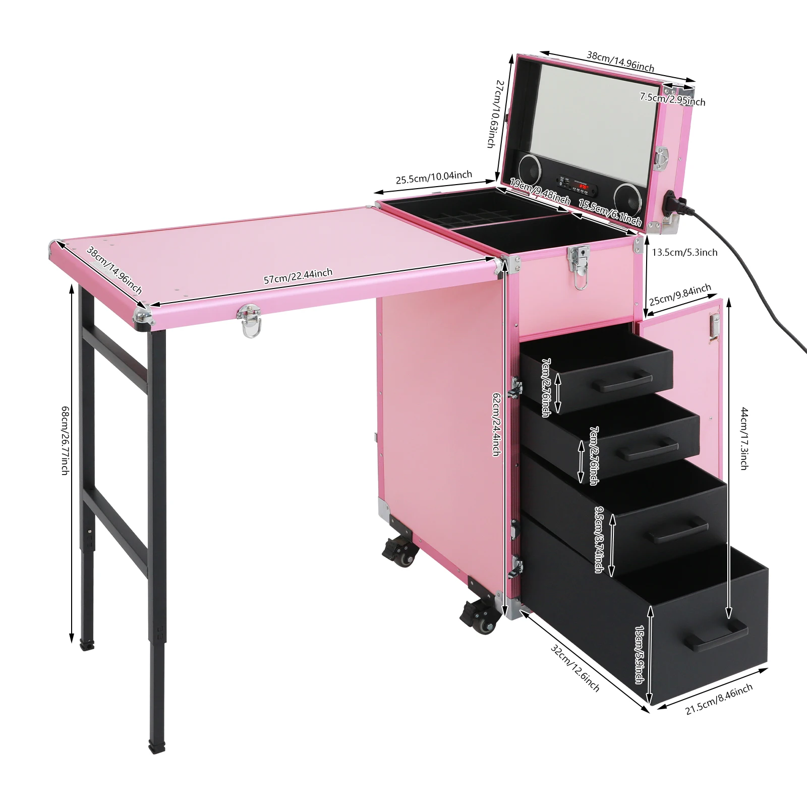 Taille de la table étendue: 57*38*68 cm/22,44*14,96*26,77 pouces