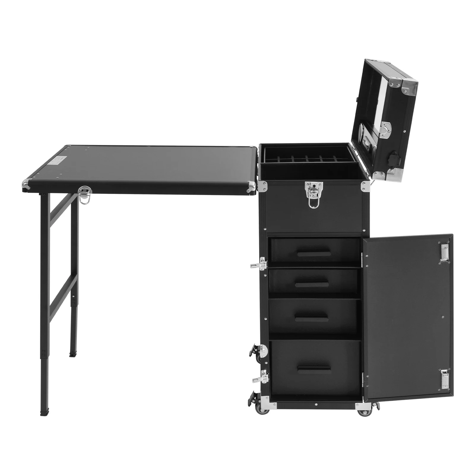 Notre table de manucure roulante est superbement conçue, alliant praticité et portabilité.Il fournit non seulement un établi spacieux et un grand espace de rangement pour accueillir divers produits de maquillage et de broderie, mais améliore également considérablement la commodité des travaux en extérieur grâce à sa fonction de pliage facile.Il est fait de matériaux de première qualité, avec une structure stable et durable, ce qui en fait un choix idéal pour les maquilleurs et broderies professionnels.