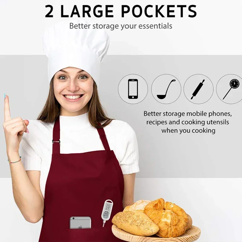 Cuisinez toute la journée avec confort et style Offrir une meilleure protection à votre famille des tabliers RED DIYI Devotes depuis de nombreuses années, présente le vêtement de cuisine le plus approprié et le plus idéal pour la population commune.Offre une meilleure protection à la taille et à la partie poitrine. Description du produit Colis : tablier + chapeau Spécification: 100% neuf et de haute qualité -Type: tablier de cuisine Remarque : il y a parfois quelques erreurs sur les couleurs en raison de la lumière et des scènes différentes. Mais j'ai essayé de mon mieux pour vous montrer la couleur et le matériau réels. Vous obtenez ce que vous voyez! Afficher les détails Sangle de cou réglable Avec une sangle de cou réglable, peut être réglable de 13 à 23 pouces, Liens longs qui peuvent être facilement modifiés pour s'adapter à la plupart des tailles. Selon son réglage, vous pouvez ajuster la taille en fonction de vos propres besoins à tout moment. 2 POCHES Placez 2 grandes poches sur le devant du tablier.Aide à maintenir le thermomètre à viande, glissades de grill, cartes de recettes, etc.Parfait pour le divertissement à domicile ou le gourmet. Ne perdez plus de temps à refendre à la recherche de vos affaires. Exposition de modèles Cet essentiel de cuisine fondamental est fabriqué à partir d'un matériau en polyester résistant aux chutes d'eau, qui vous aide à cuisiner, laver ou faire n'importe lequel de vos travaux de cuisine sans être stressé pour que vos vêtements soient en désordre. Sans produits chimiques nocifs, sans danger pour vous et votre famille. Méticuleusement construit, ce tablier durera des années à venir et deviendra partie de tous vos souvenirs de fond.