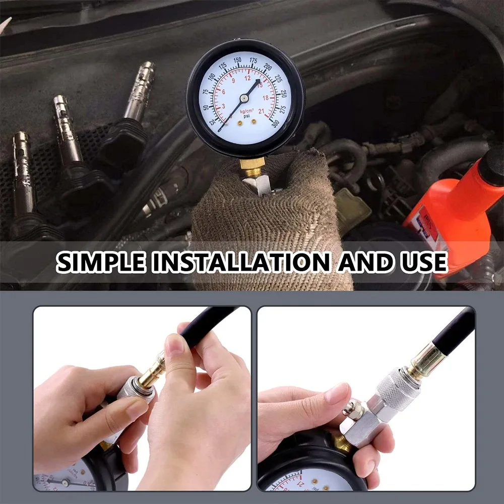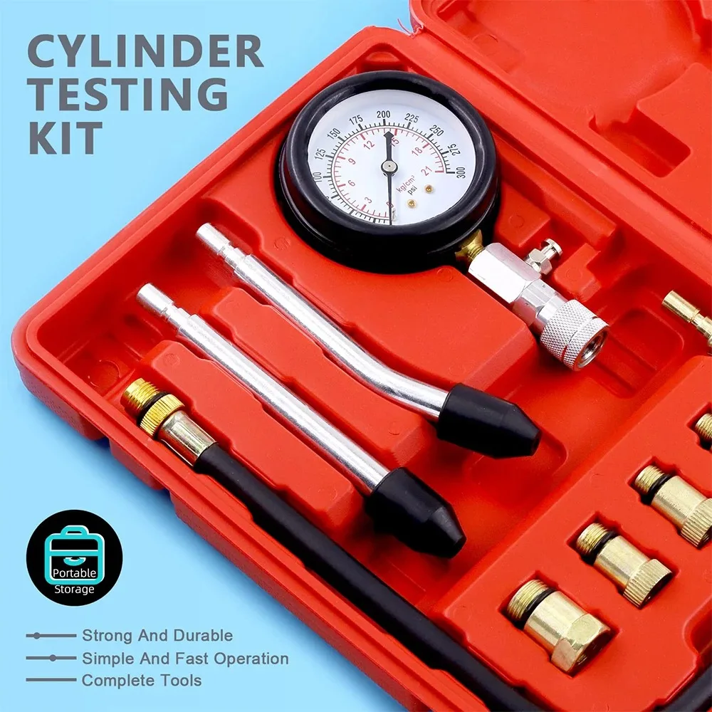 1. Tests de compression avancés : Comprend tout ce dont vous avez besoin pour tester rapidement et efficacement la pression de compression dans les cylindres des moteurs à essence, au gaz naturel et à carburant pour la plupart des types de bougies d'allumage des voitures, camions, motos, véhicules marins, VTT, UTV, motoneiges, bateaux et plus encore.