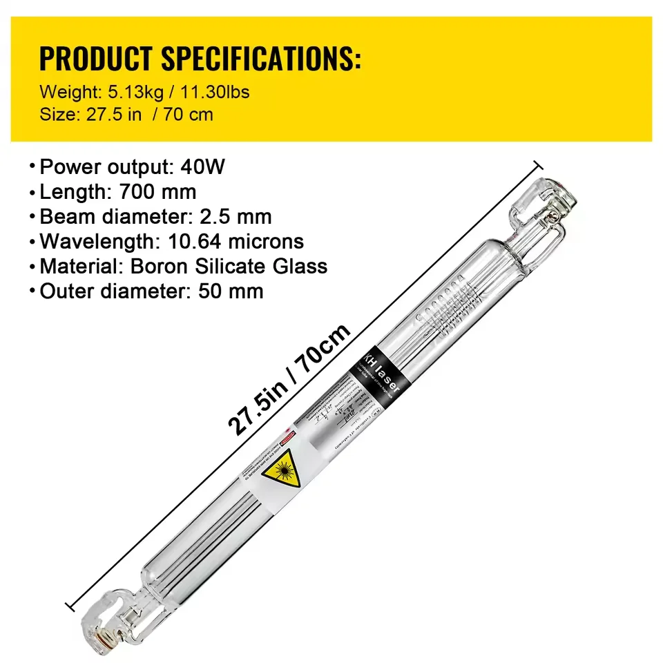 Le tube laser co2 est parfait pour la machine de gravure laser, la machine de marquage laser, la machine de découpe laser et la découpe acrylique, etc.