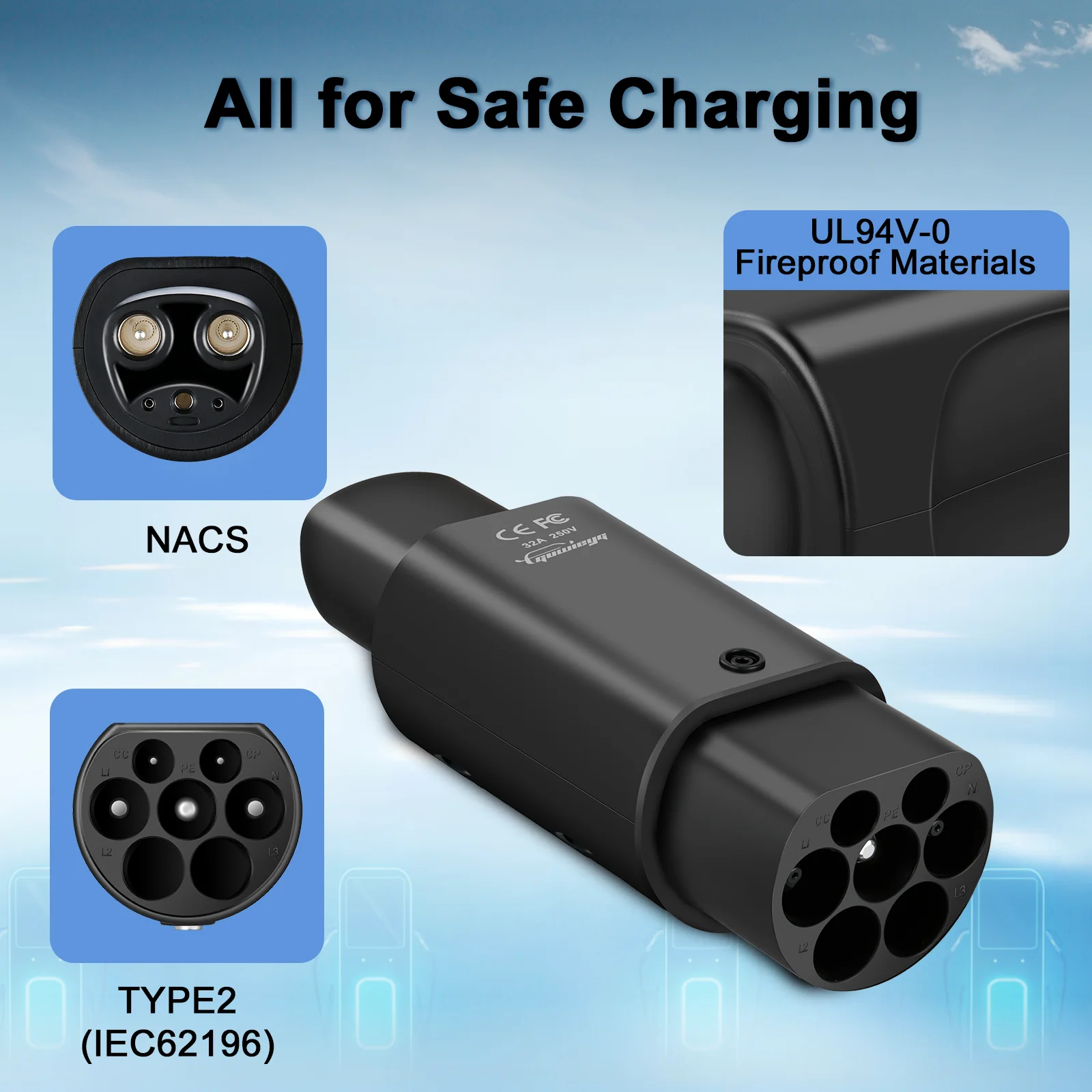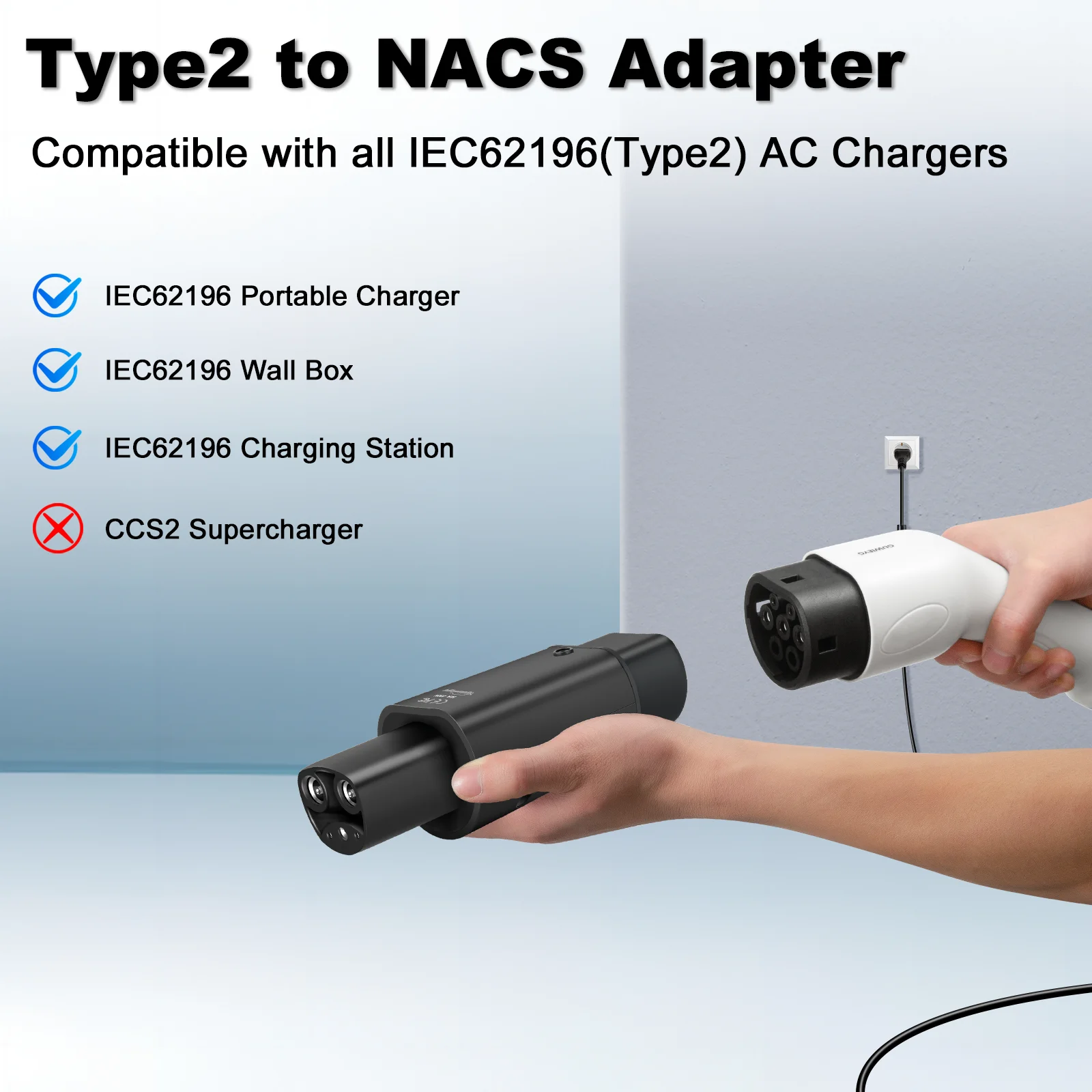 Type2 pour adaptateur Tesla AC 7.2KW adapté au chargeur EV Type2 adapté pour Tesla modèle S/X/3 chargeur Tesla non adapté/Station de charge Type2